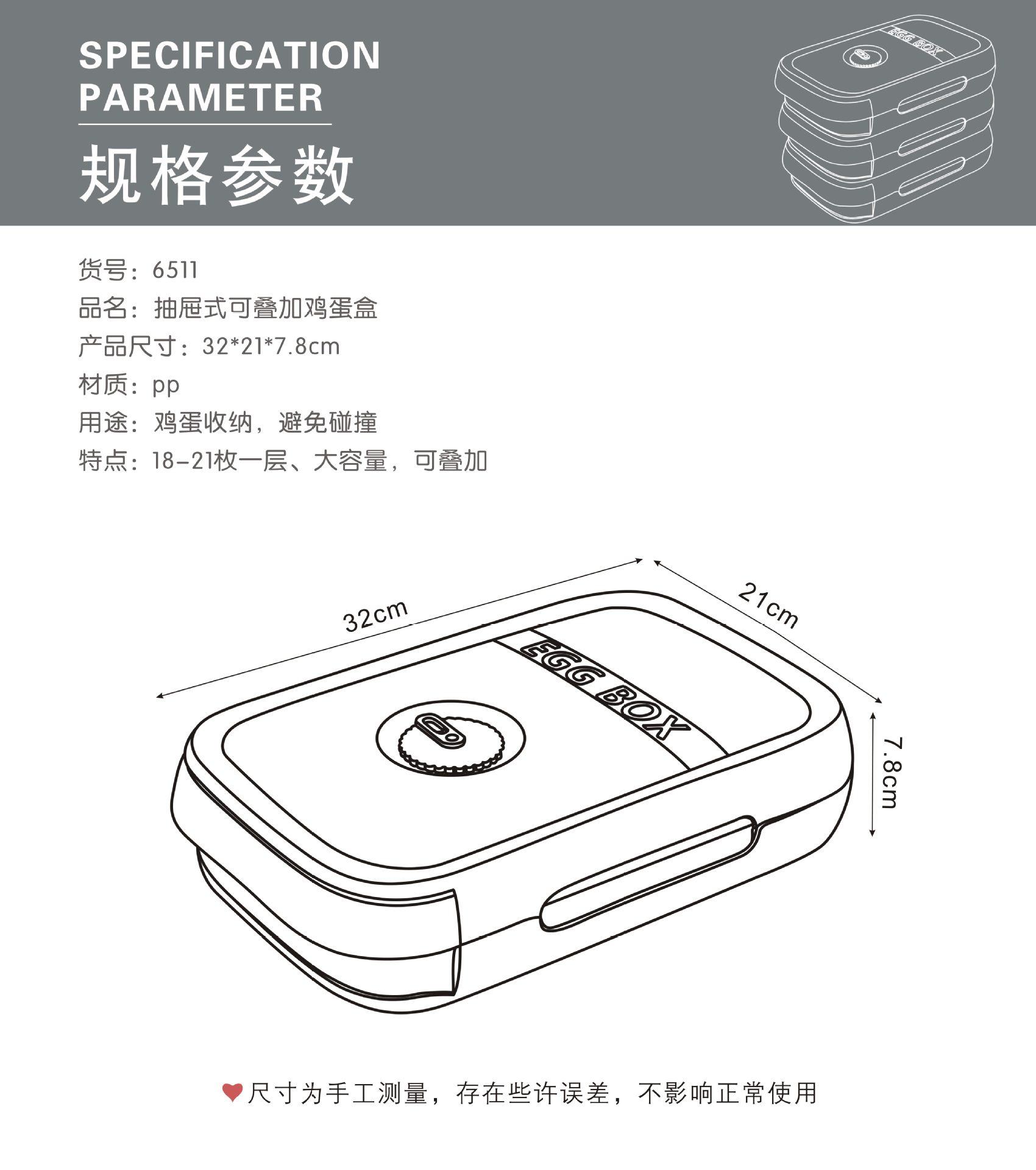 Se vende por caja, 24 cajas por caja, empaquetado individualmente (por favor, haga su pedido de acuerdo con la cantidad de embalaje).Tamaño de la huevera con cajón: 32*21*7.8cm