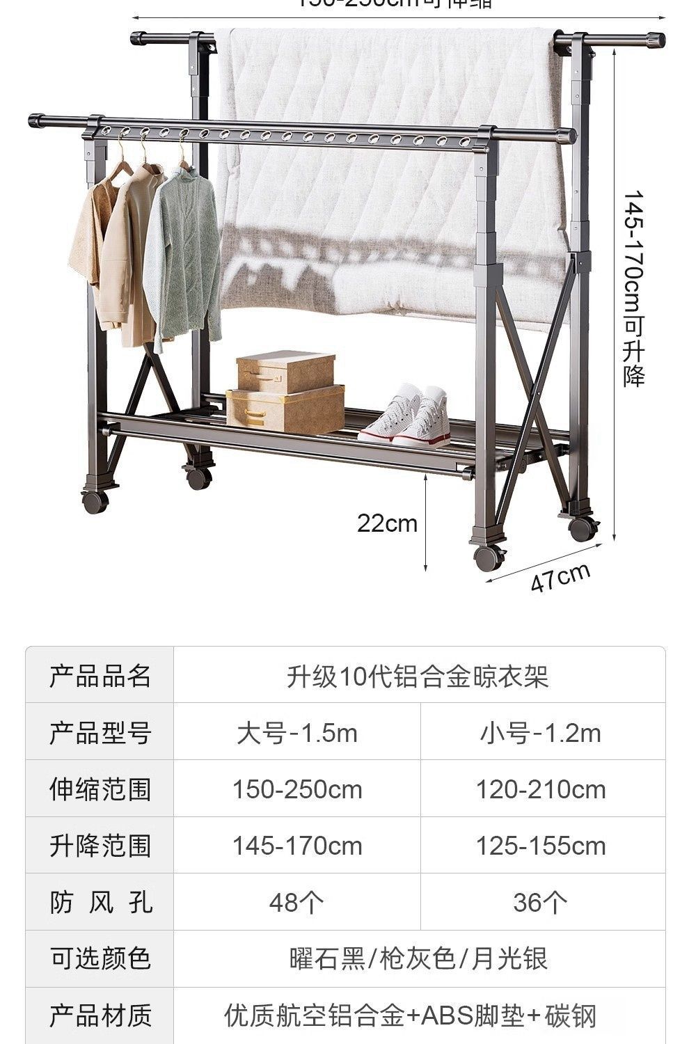 Carbon steel weighted leg gun gray aluminum alloy clothes pole [drying net] [bilateral lifting] 1.2 meters -2.2 meters