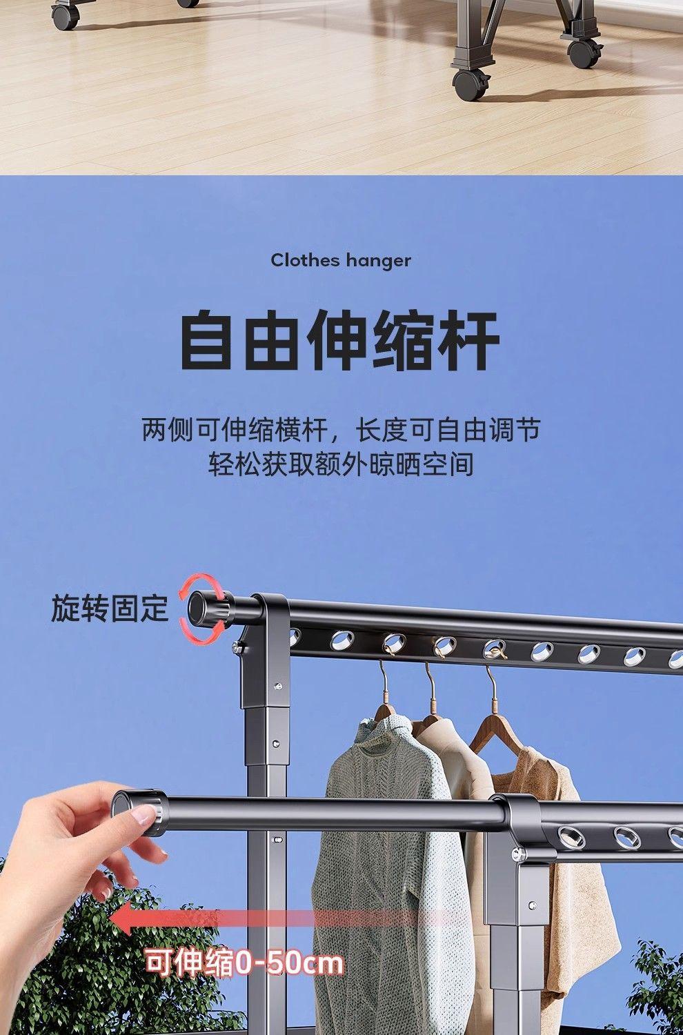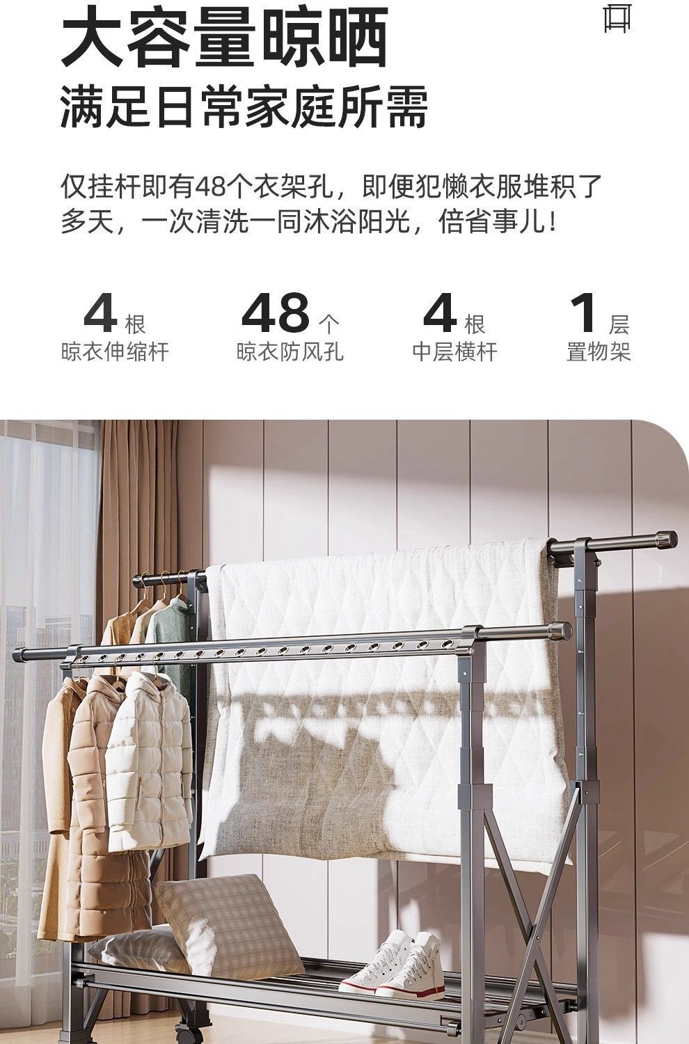 Tendedero de Ropa Plegable de Pie para Interior, Tendedero de Doble Barra para Balcón Exterior, Altura Ajustable para Secar Edredones