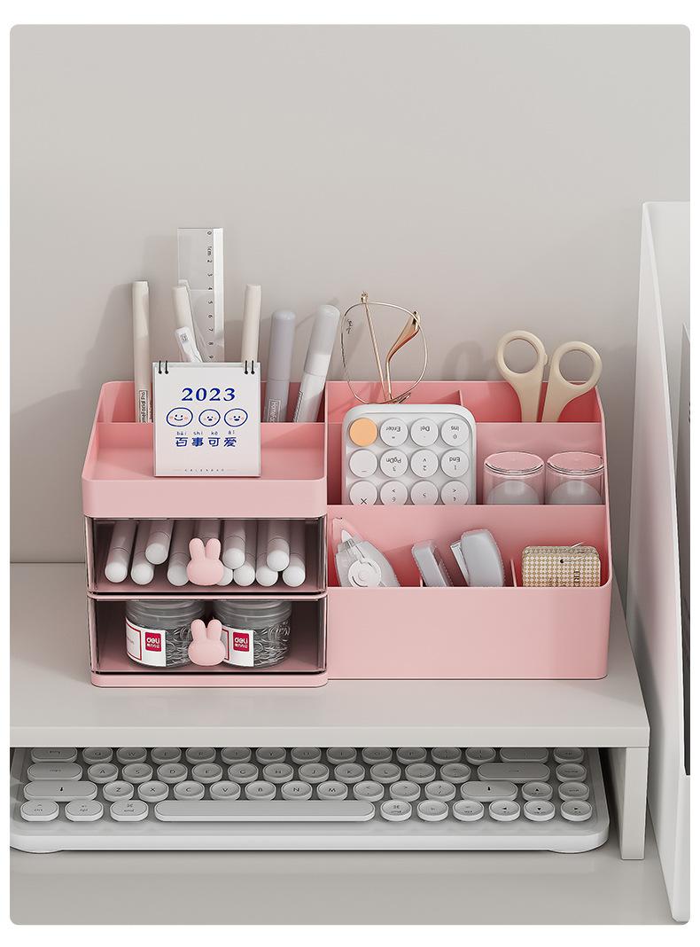 Caja de almacenamiento de cosméticos de escritorio, estante de almacenamiento para oficina, papelería, escritorio, portalápices, estante de almacenamiento de escritorio, escritorio lindo