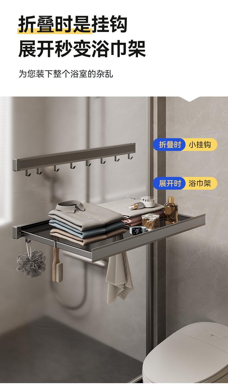 2025 new arrival - black [shock-absorbing, slow-rising] suction cup drying rack 44cm + towel bar + 6 hooks