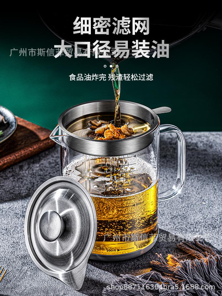 Compra Olla de aceite de vidrio de borosilicato con asa, rejilla de aceite resistente al calor, para uso doméstico, comercial, con filtro de escala, de acero inoxidable de grado alimenticio al por mayor en Joom.pro