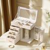 Caja de almacenamiento de joyas de plástico de gran capacidad y múltiples capas, compartimento transparente para collares, pendientes, pulseras, joyas, caja de escritorio