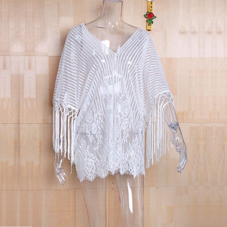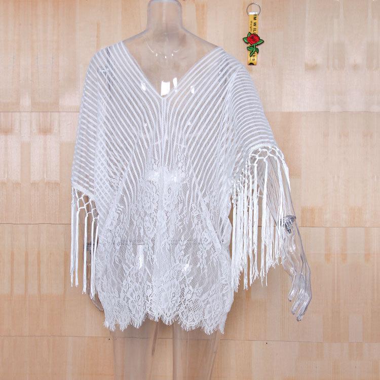 Blusa de encaje con cuello en V para deportes de playa al aire libre, nueva blusa de encaje europea y americana, fabricantes al por mayor