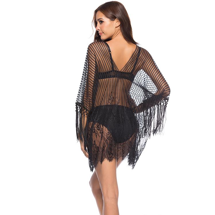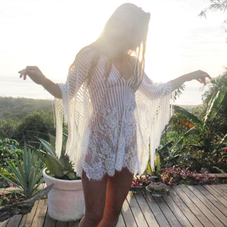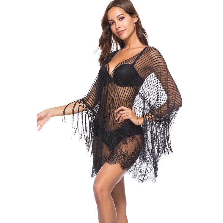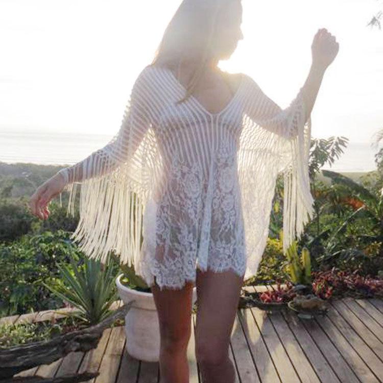 Vestido de playa de encaje estilo europeo y americano para mujer, sexy, sin espalda, con protección solar