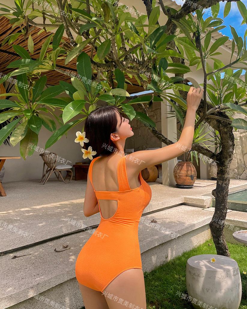 [5 colores] Versión coreana del nuevo traje de baño bikini de una sola pieza retro ajustado de color caramelo y color sólido para chicas de vacaciones