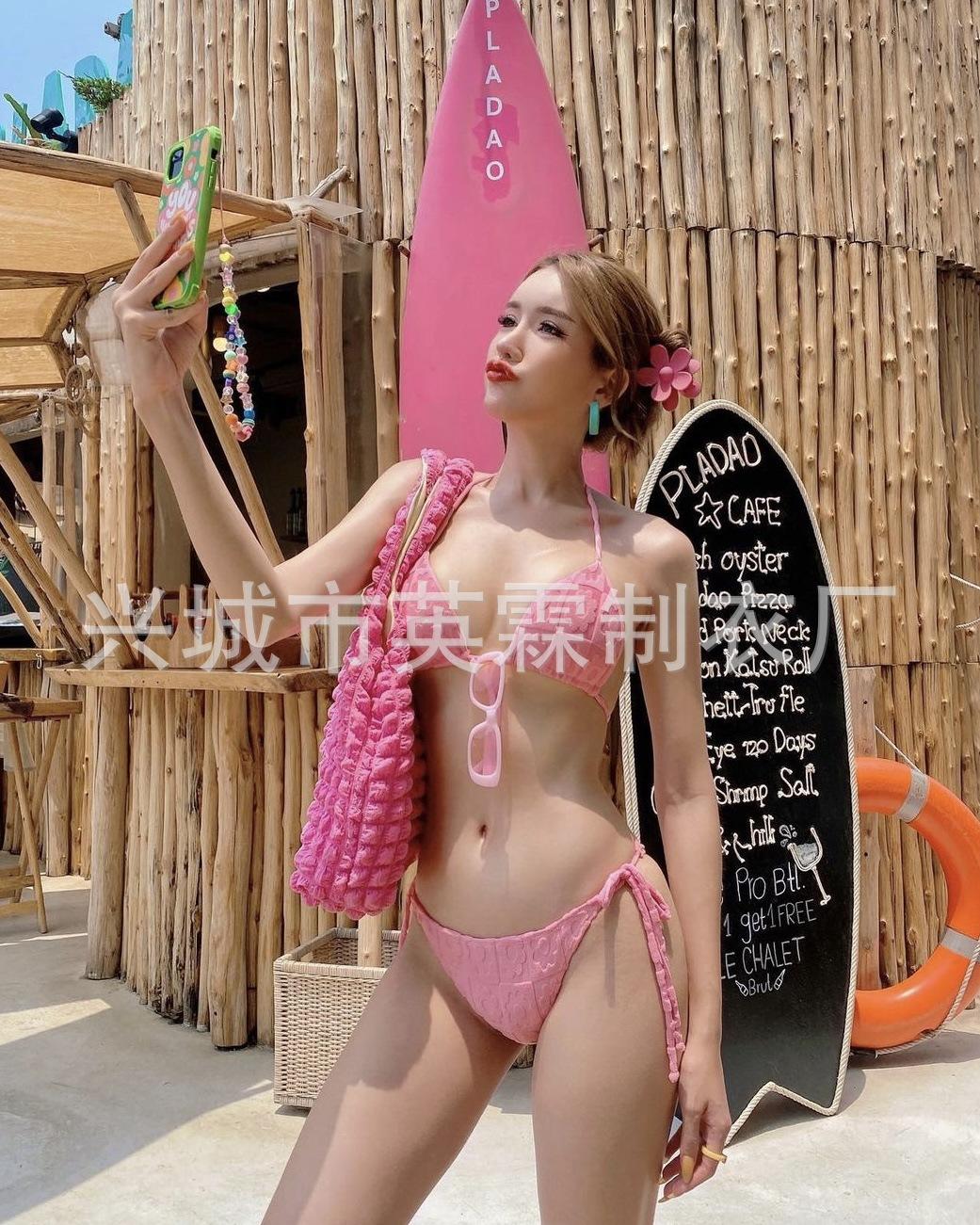 Traje de baño de playa con cuello halter y toalla de color caramelo sexy de lujo ligero para mujer de SOURCE Factory New Girl
