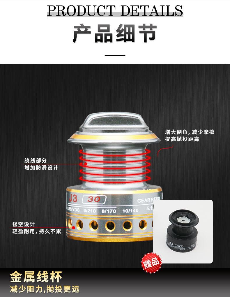 El carrete de pesca utiliza engranajes de gran tamaño y un diseño de copa de doble línea, lo que le permite soportar vientos fuertes en cualquier momento. Adopta la forma tradicional de rueca y está tratado con un revestimiento ecológico de alta temperatura para mejorar considerablemente la resistencia a la oxidación y al desgaste, brindándole un carrete de pesca duradero. El diseño de agarre cómodo y sin arrugas facilita su agarre con las manos mojadas o secas. La superficie del carrete está rectificada con precisión y se desliza suavemente, permitiéndole disfrutar de una experiencia de pesca en plena naturaleza.