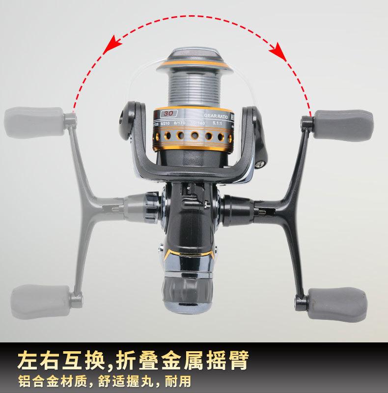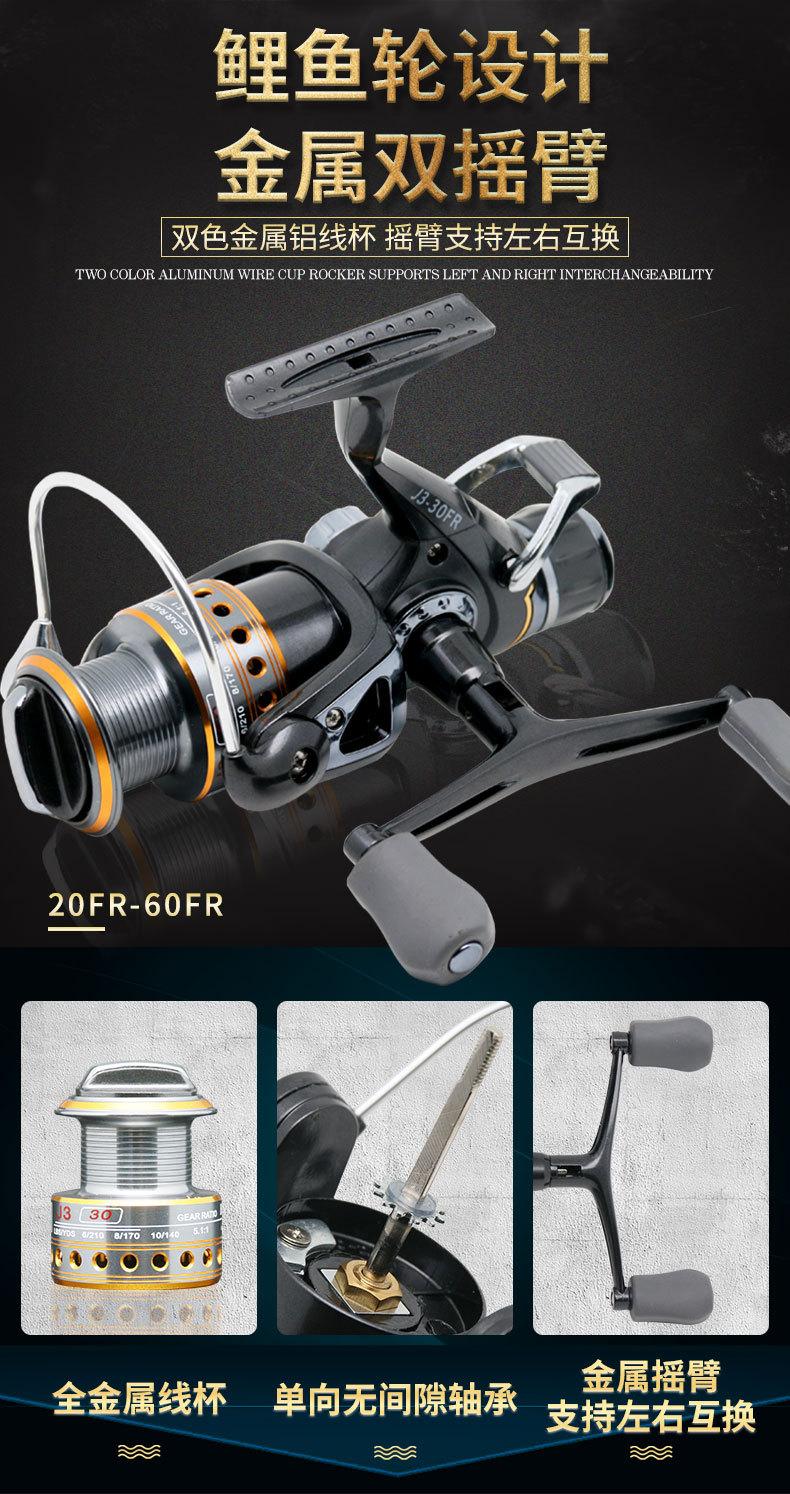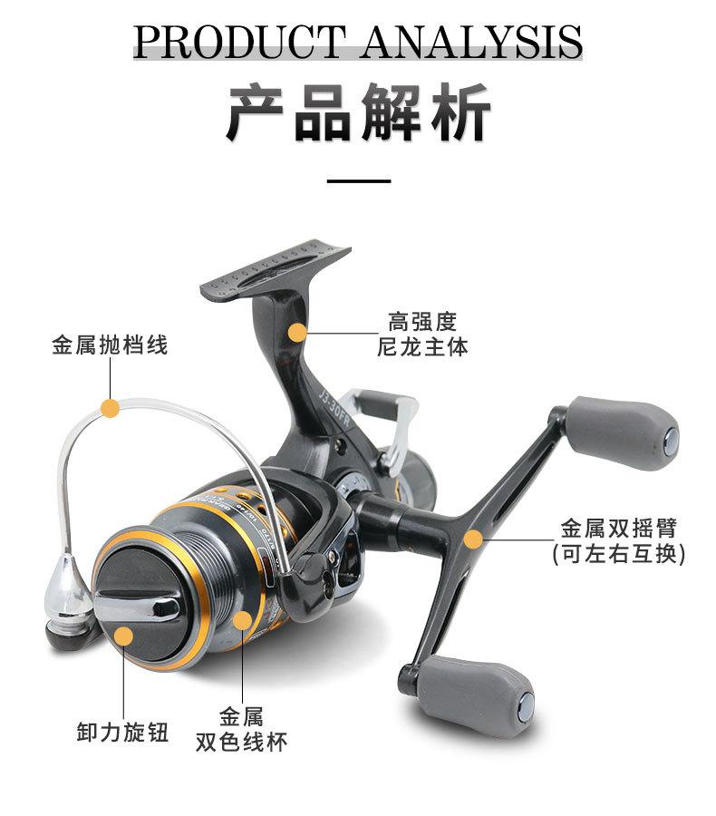 Características del producto: balancín doble de metal (intercambiable izquierdo y derecho), carrete de pesca unidireccional sin espacio; fuerte y resistente;