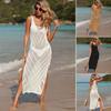 Vestido de playa de verano europeo y americano para mujer, sexy, de punto, de color liso, tipo bikini, con aberturas, blusa, protector solar