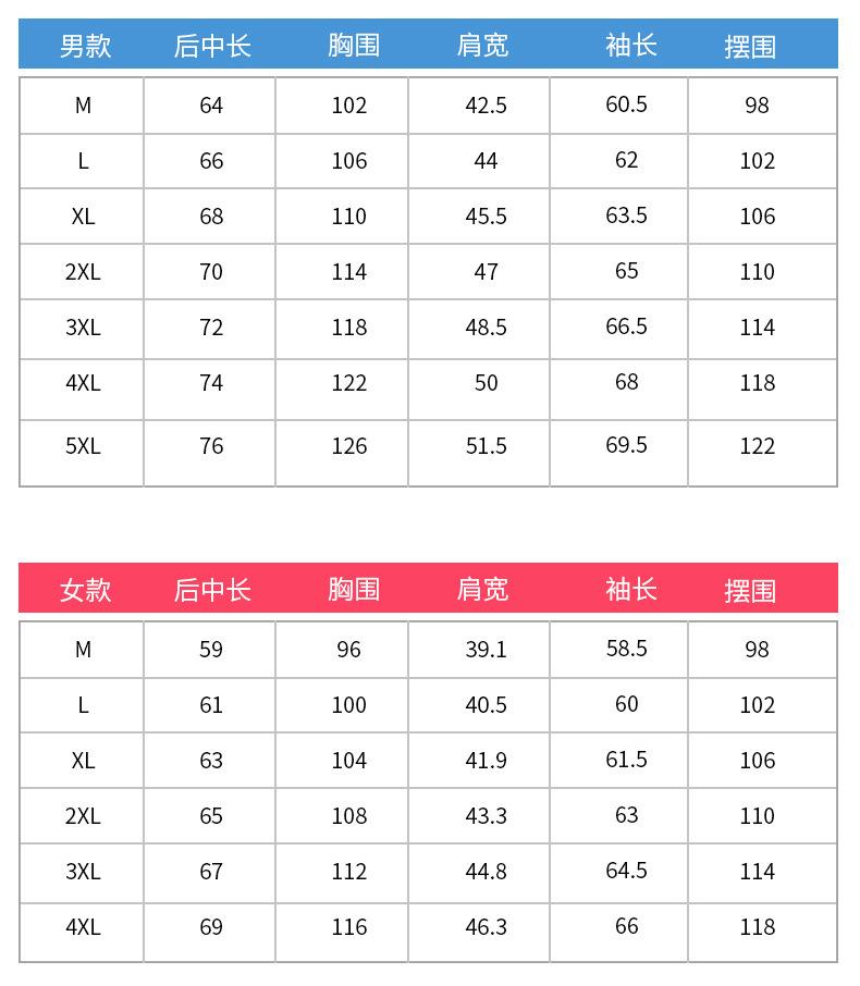 M, L, XL, XXL, XXXL, 4XL, 5XL