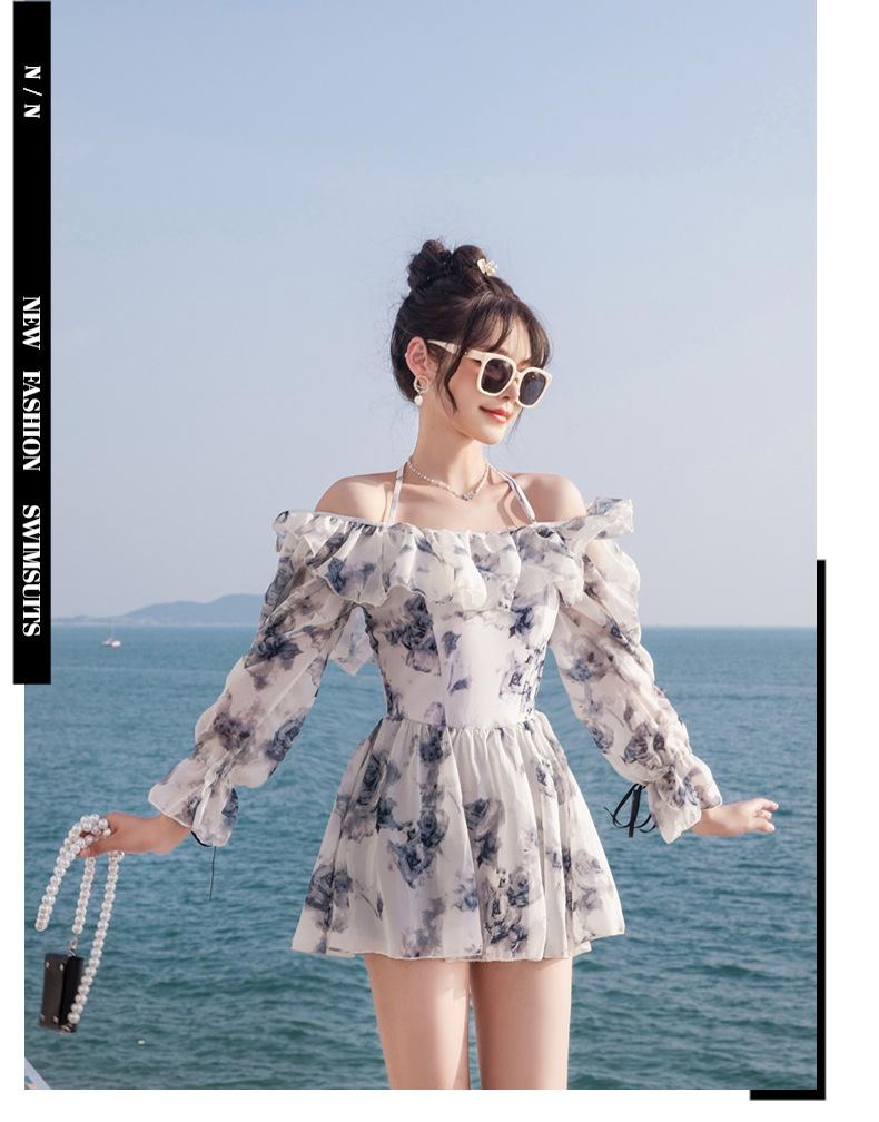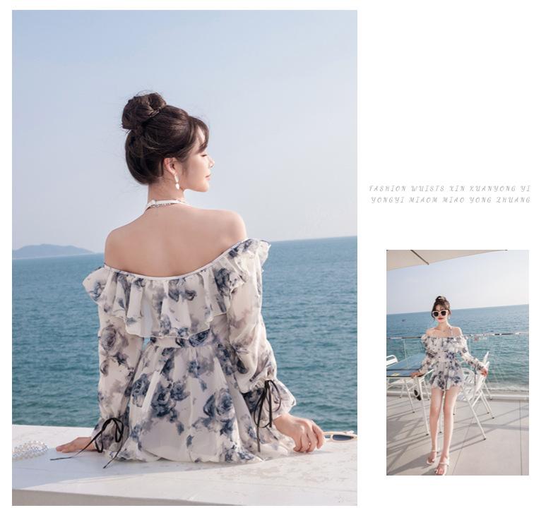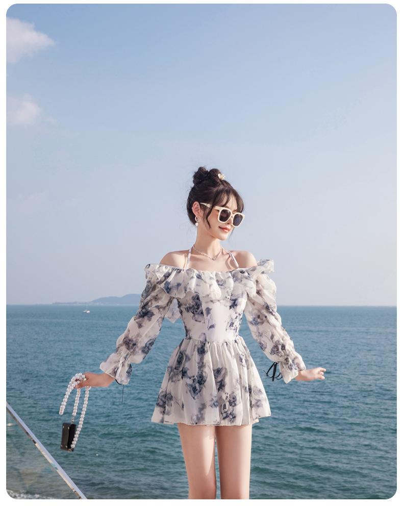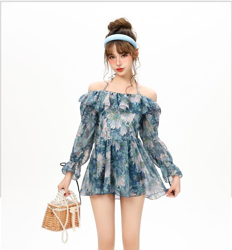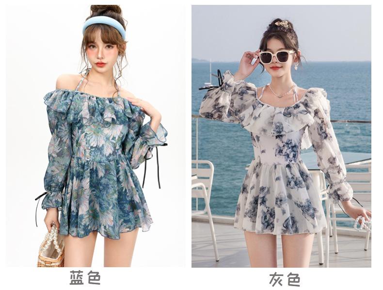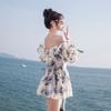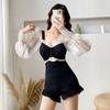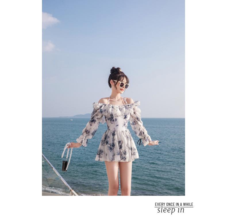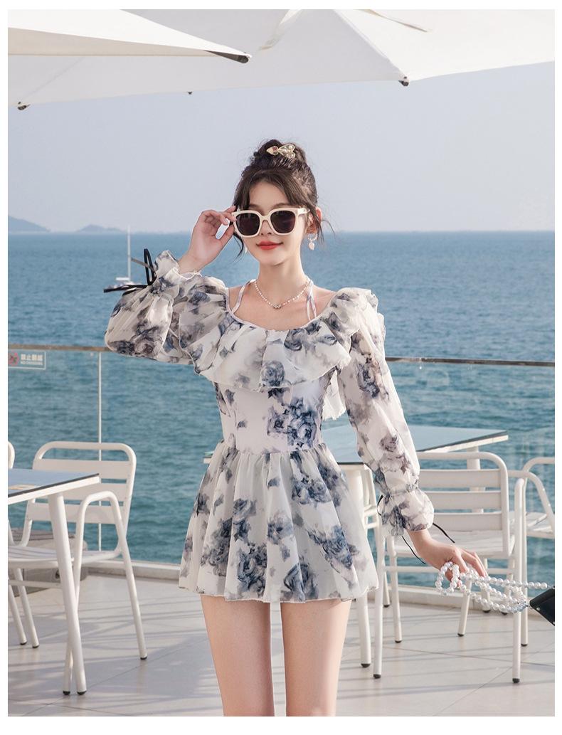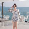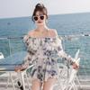 Traje de baño de hada nuevo 2025 para mujer, de una pieza, tipo bóxer, conservador, adelgazante, que cubre el vientre, manga larga, estilo coreano, traje de baño de estudiante para aguas termales
