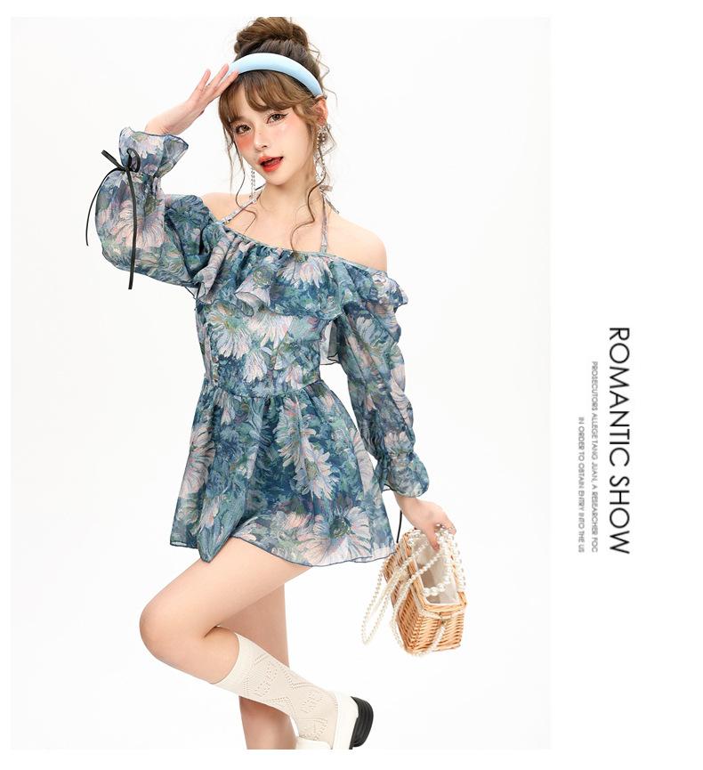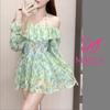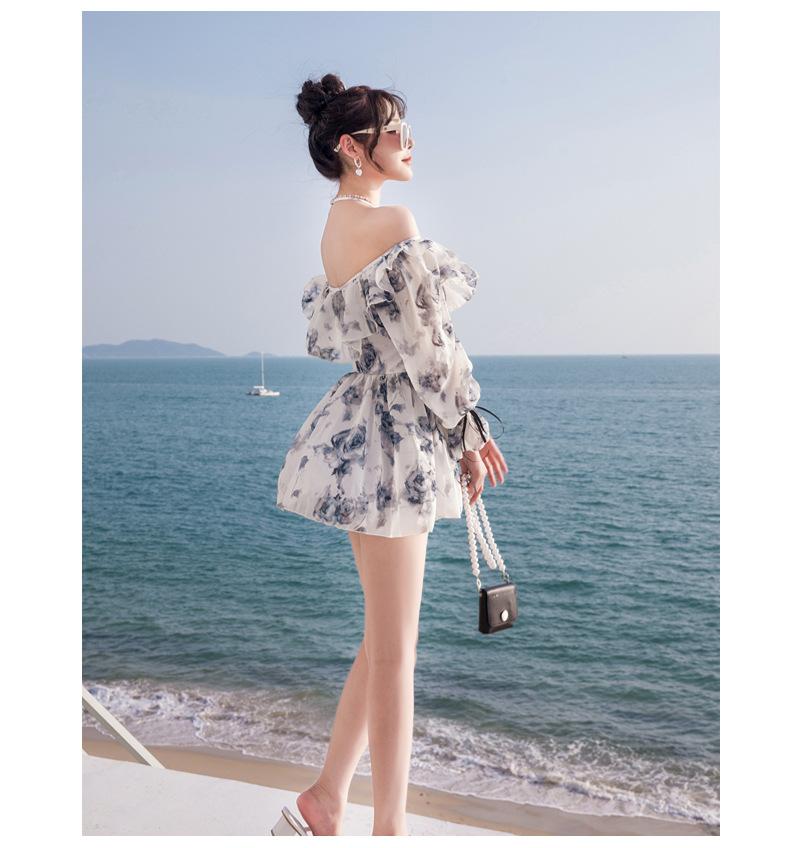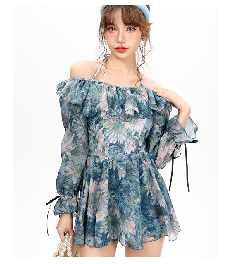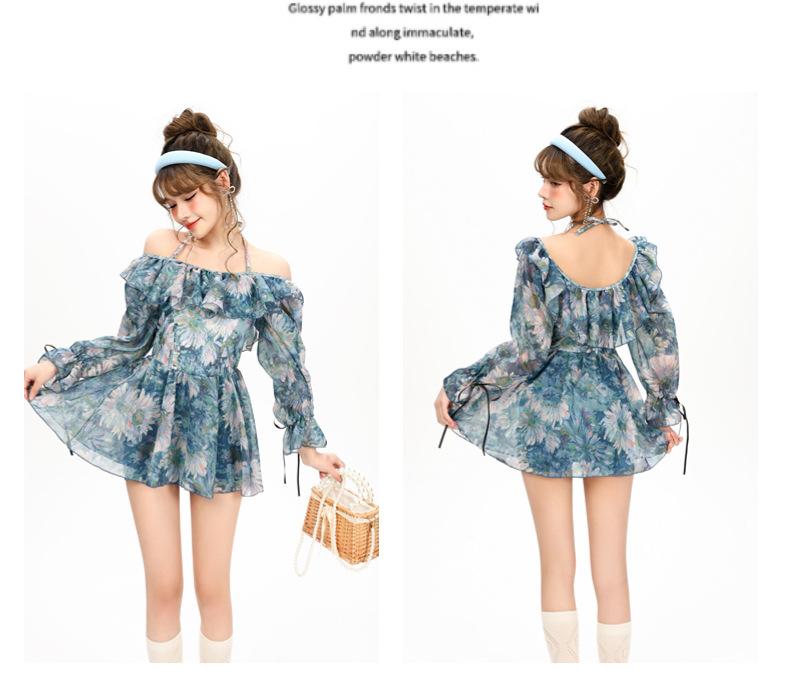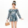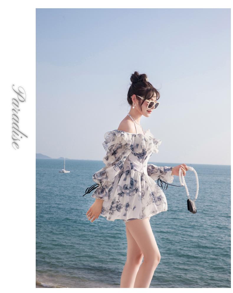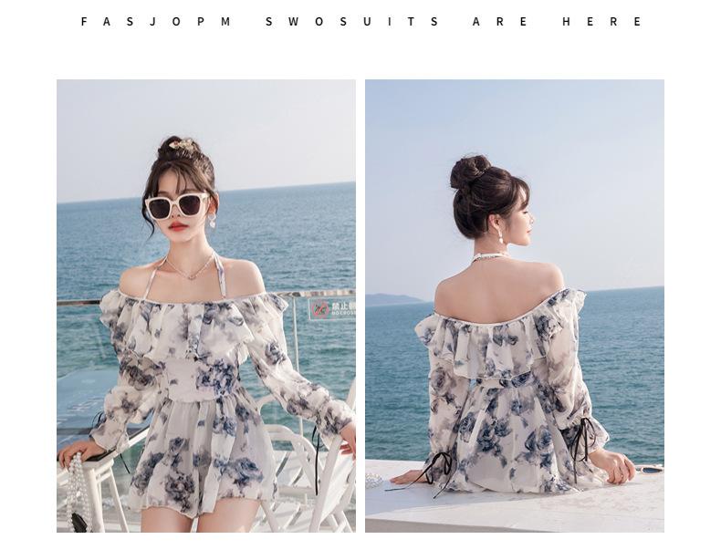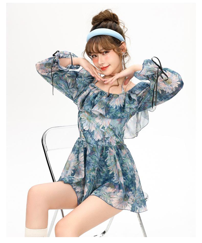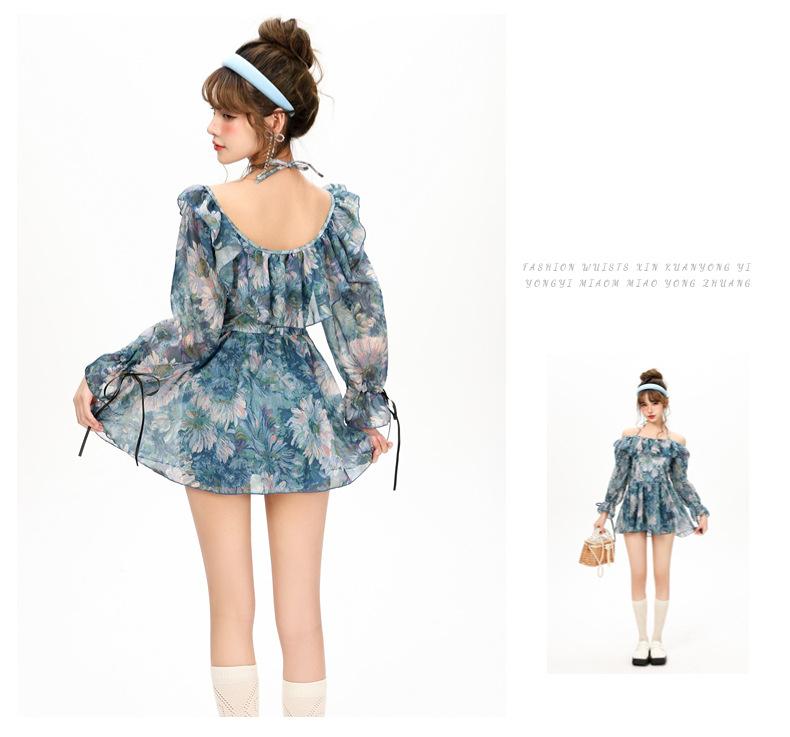 Traje de baño de hada nuevo 2025 para mujer, de una pieza, tipo bóxer, conservador, adelgazante, que cubre el vientre, manga larga, estilo coreano, traje de baño de estudiante para aguas termales