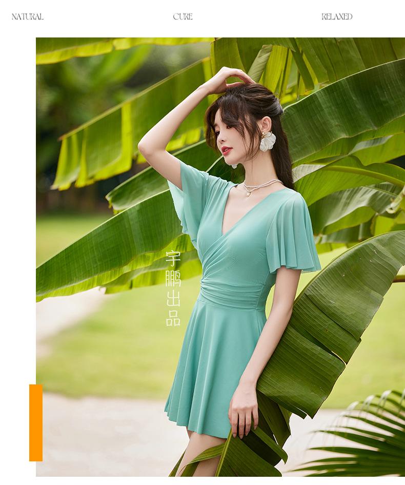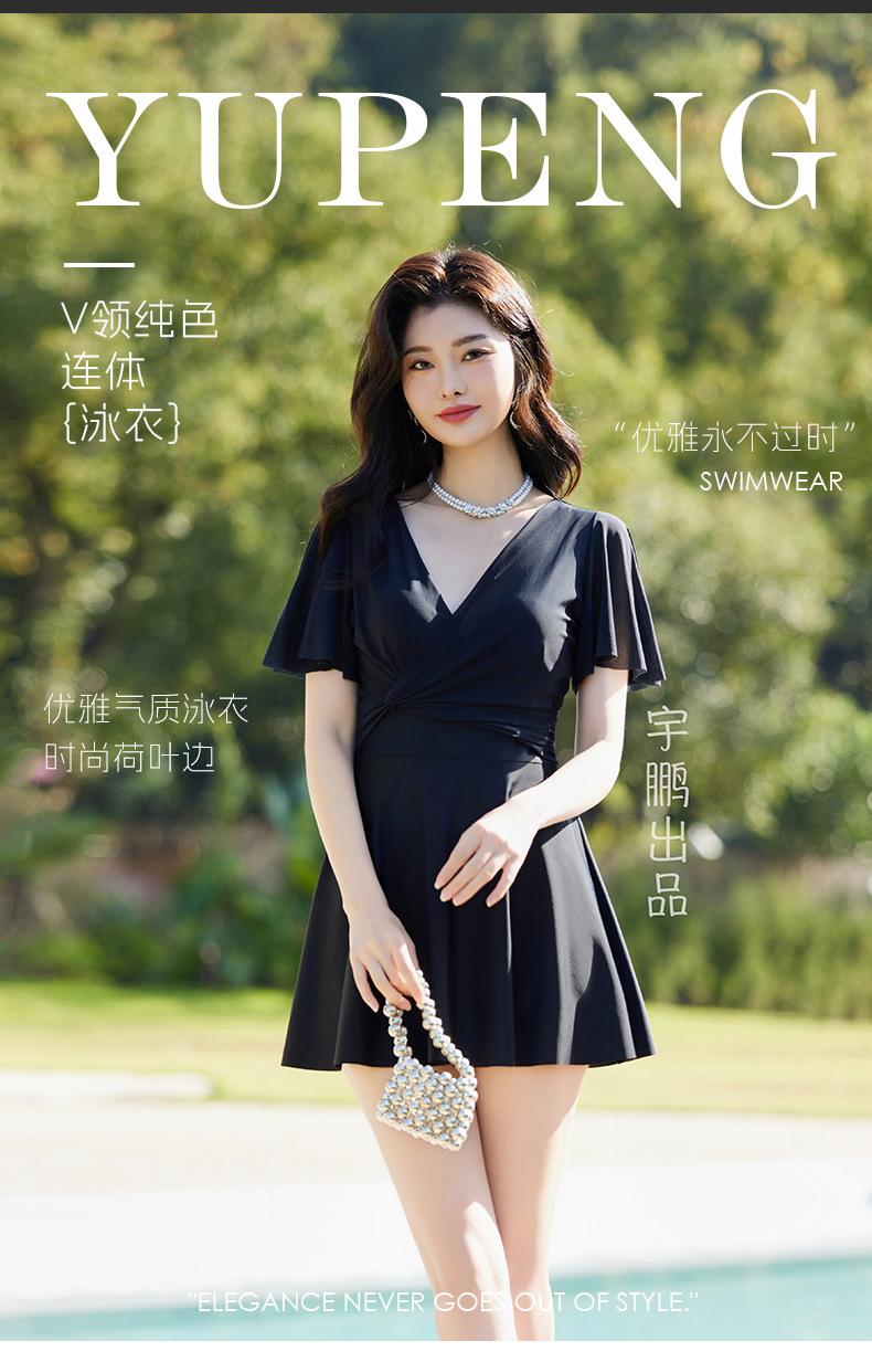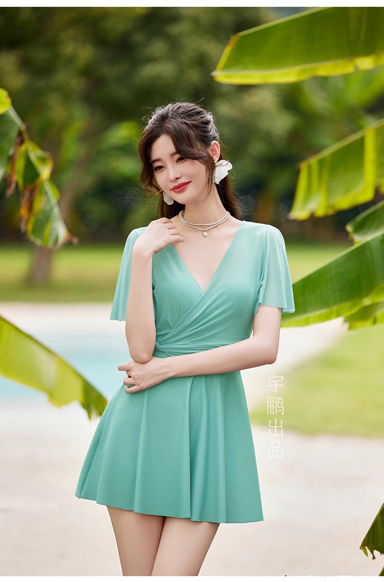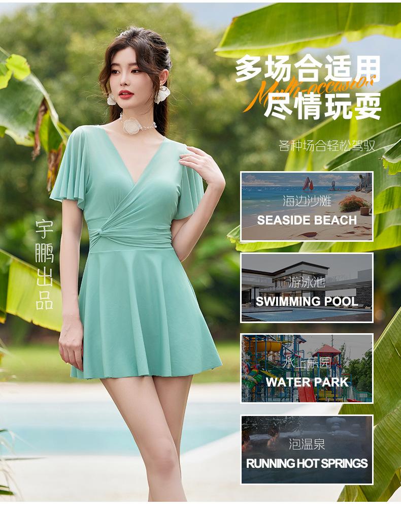 Traje de Baño de Talla Grande para Aguas Termales para Mujer, Traje de Baño Sexy con Cuello en V, Cubre la Carne, Adelgazante, a la Moda, para Vacaciones en la Playa o Aguas Termales