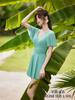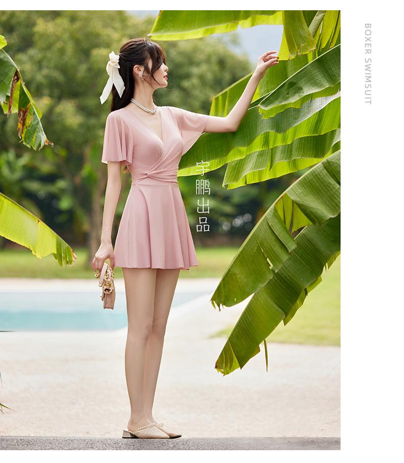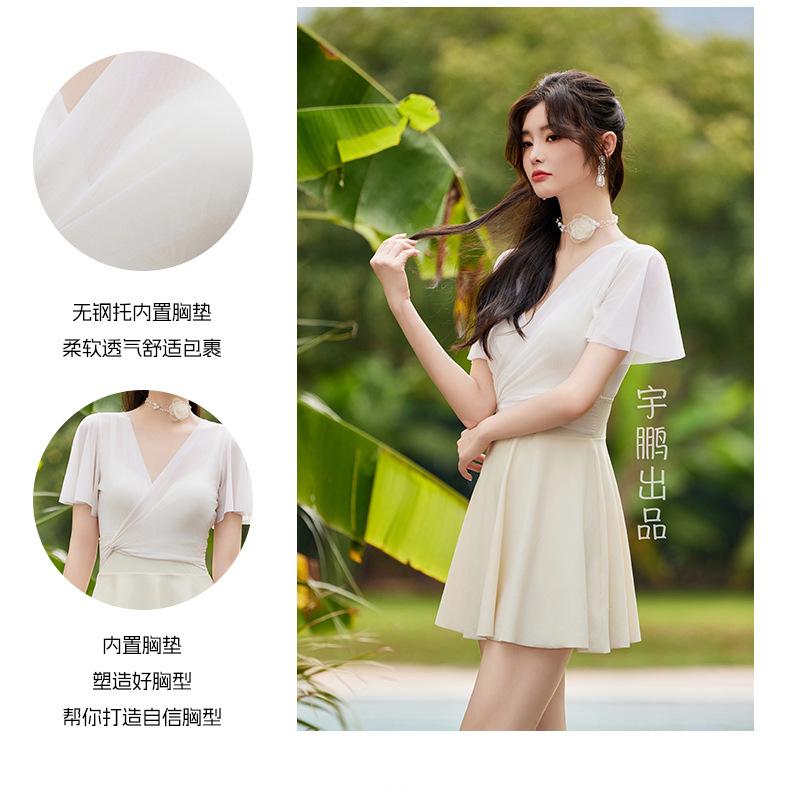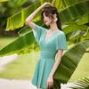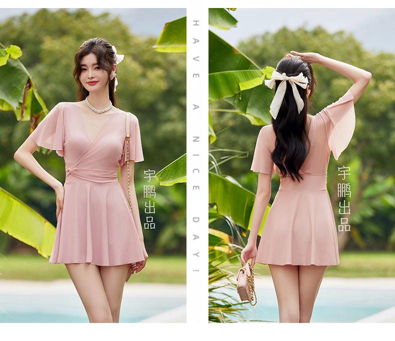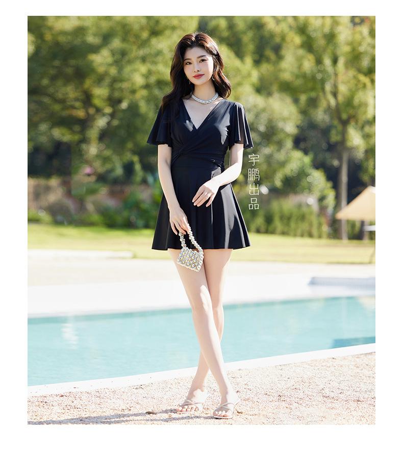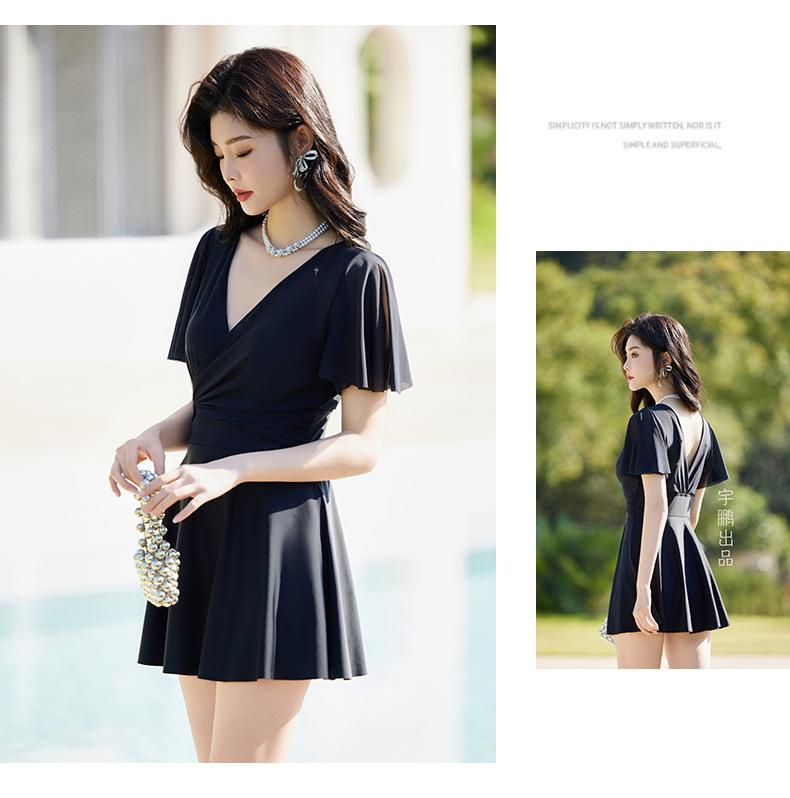 Traje de Baño de Talla Grande para Aguas Termales para Mujer, Traje de Baño Sexy con Cuello en V, Cubre la Carne, Adelgazante, a la Moda, para Vacaciones en la Playa o Aguas Termales