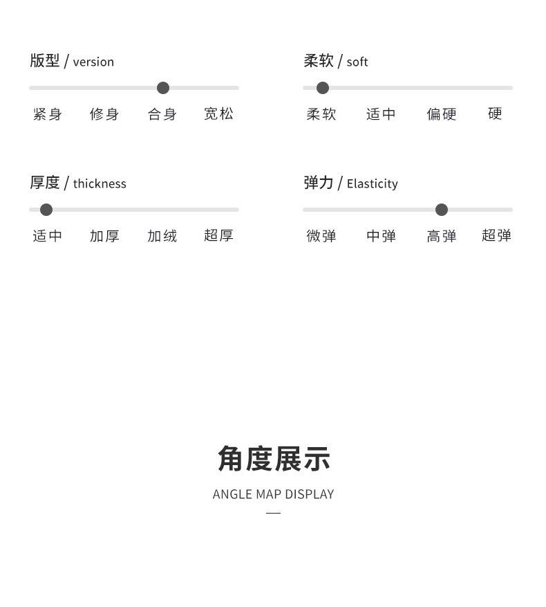 | Tela | Fibra de poliéster + nailon + elastano | índice de espesor | Moderado | |