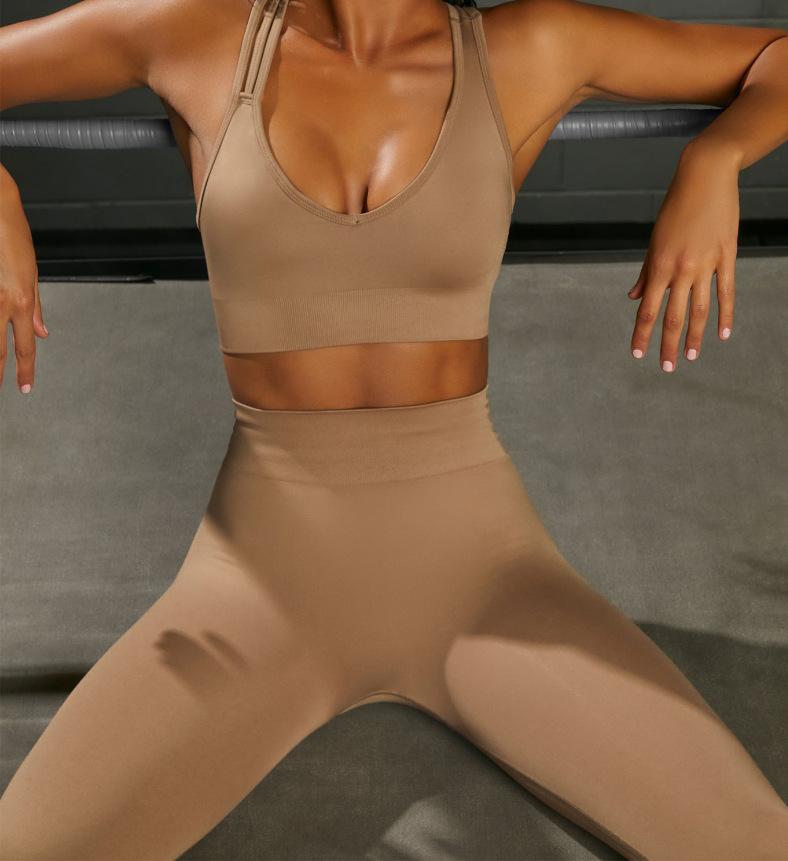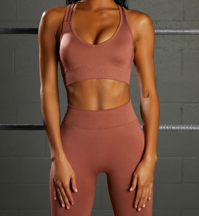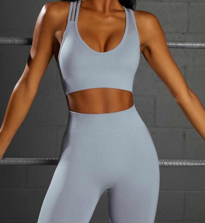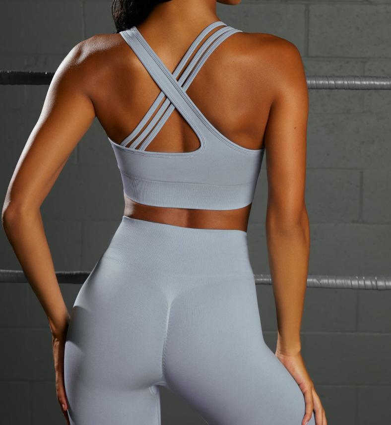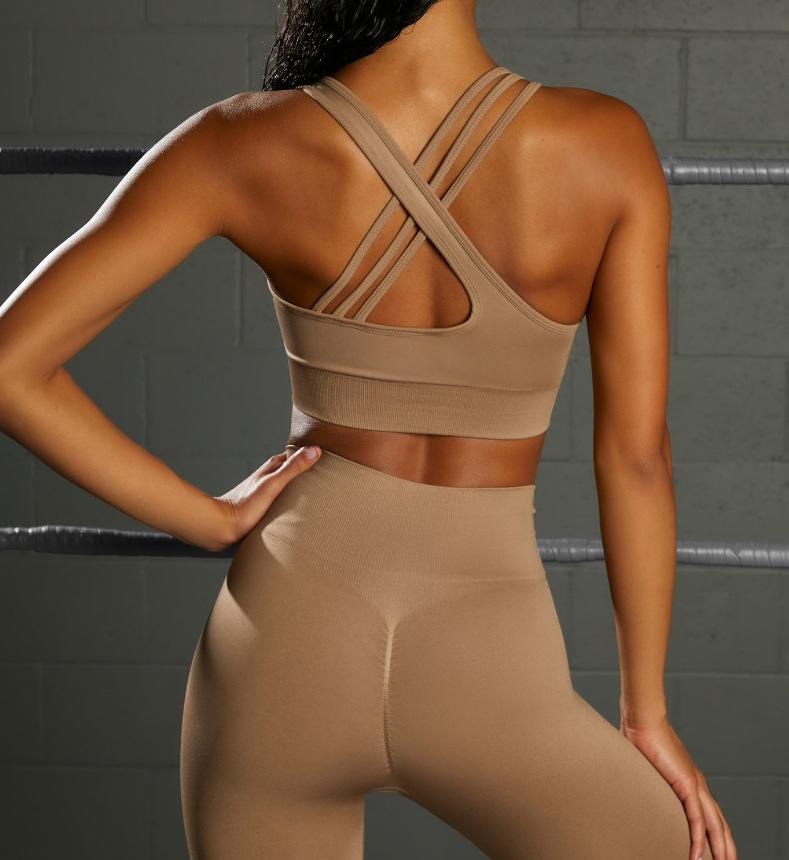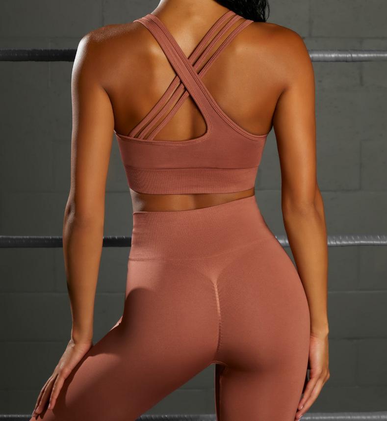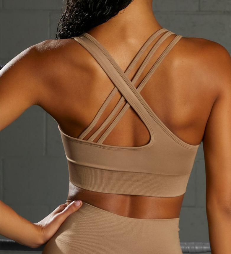 Traje de yoga deportivo europeo y americano para mujer, nuevo, para levantar caderas, fitness, color sólido, para correr, secado rápido, sujetador deportivo con espalda descubierta.