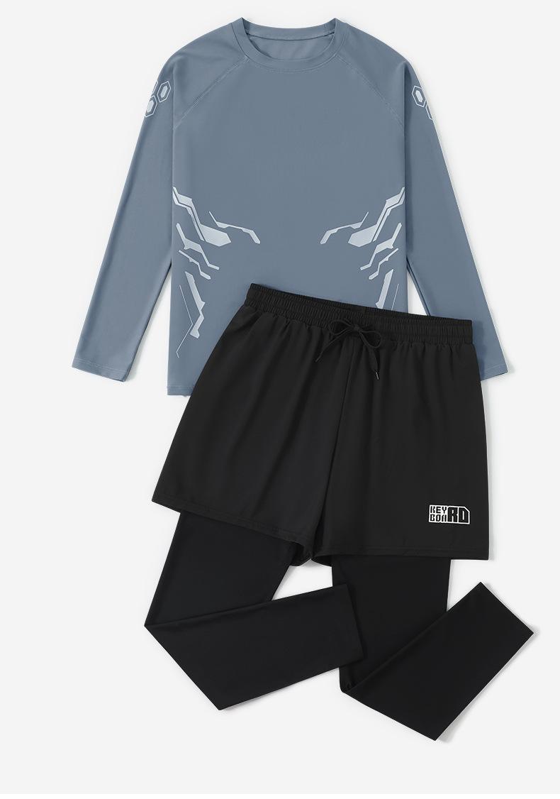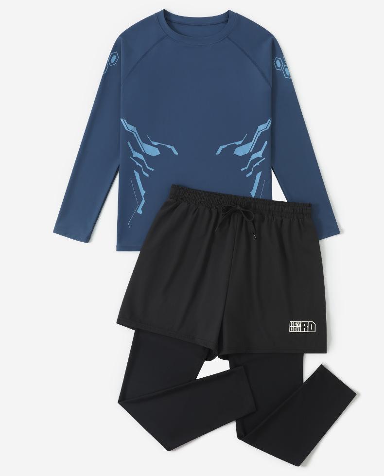 Traje de baño de dos piezas para hombre, protector solar, top de secado rápido, aguas termales, manga corta, boxer juvenil, traje de baño de cuerpo completo para hombre