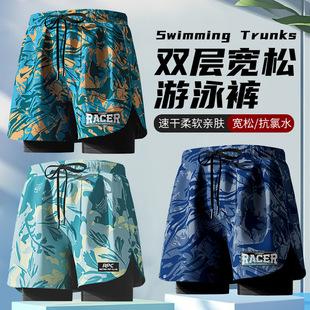 Bañador Guirenniao para hombre, bañador profesional de doble capa antivergüenza, nuevo, de secado rápido, transpirable, para playa, venta al por mayor