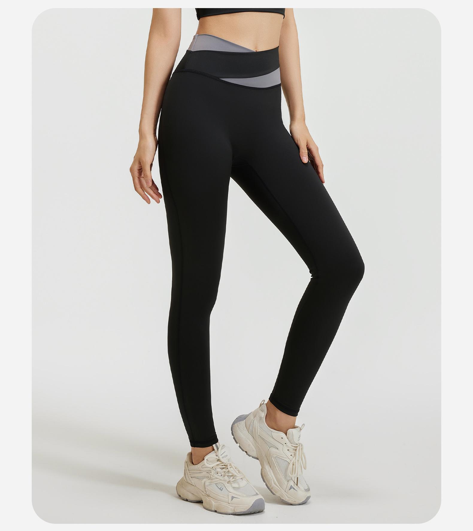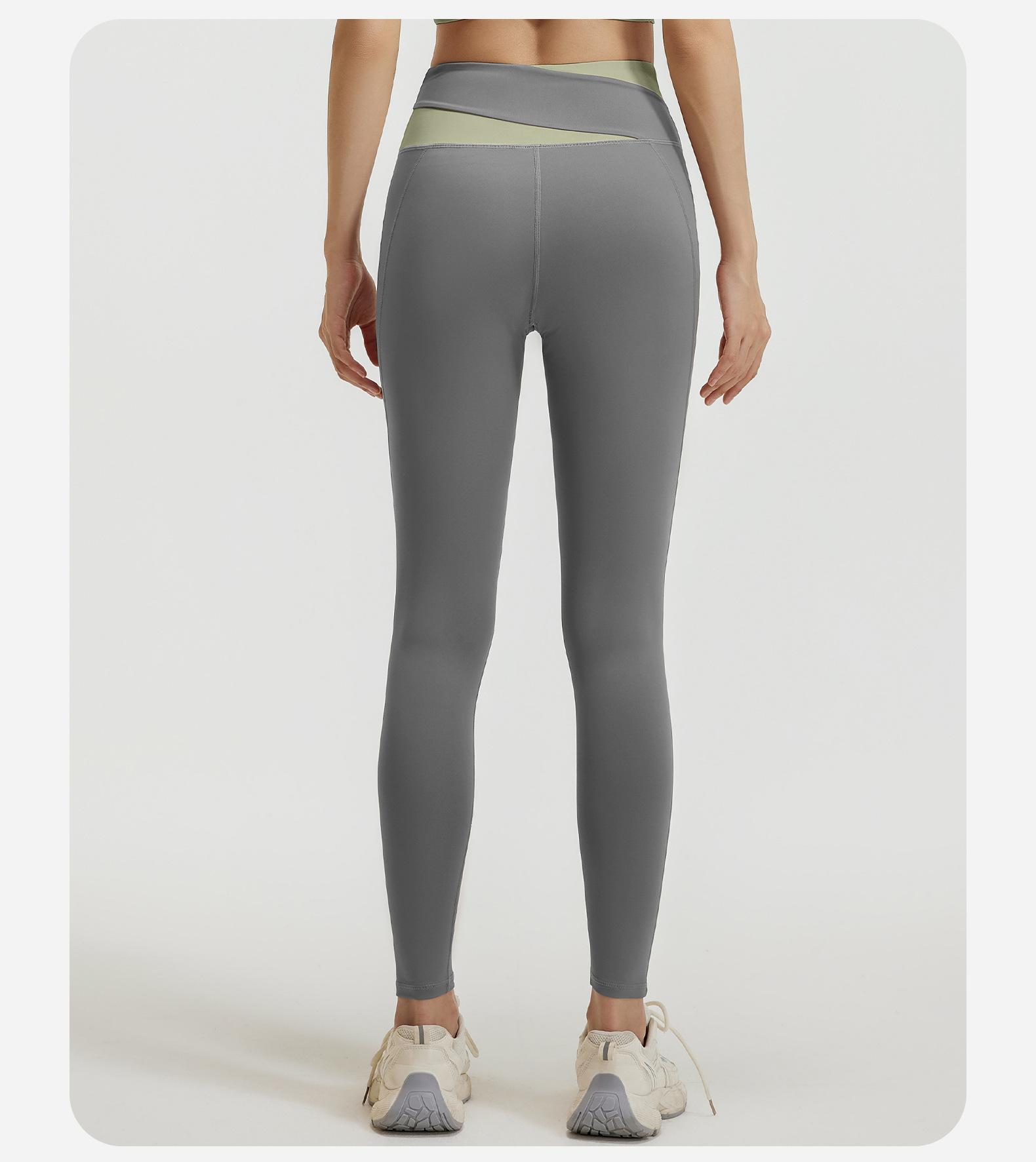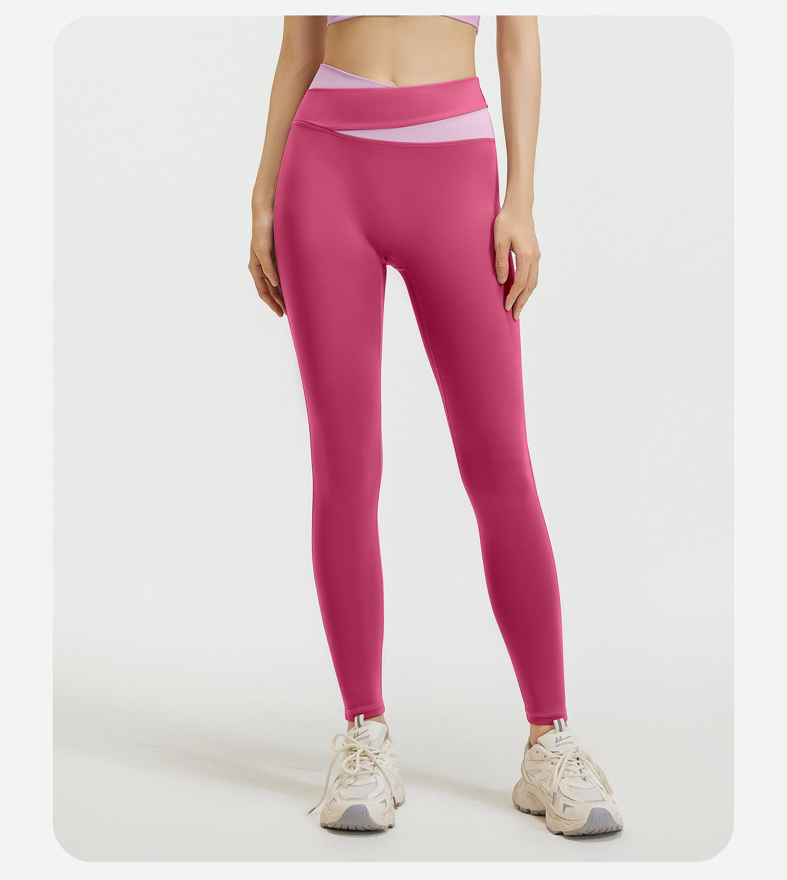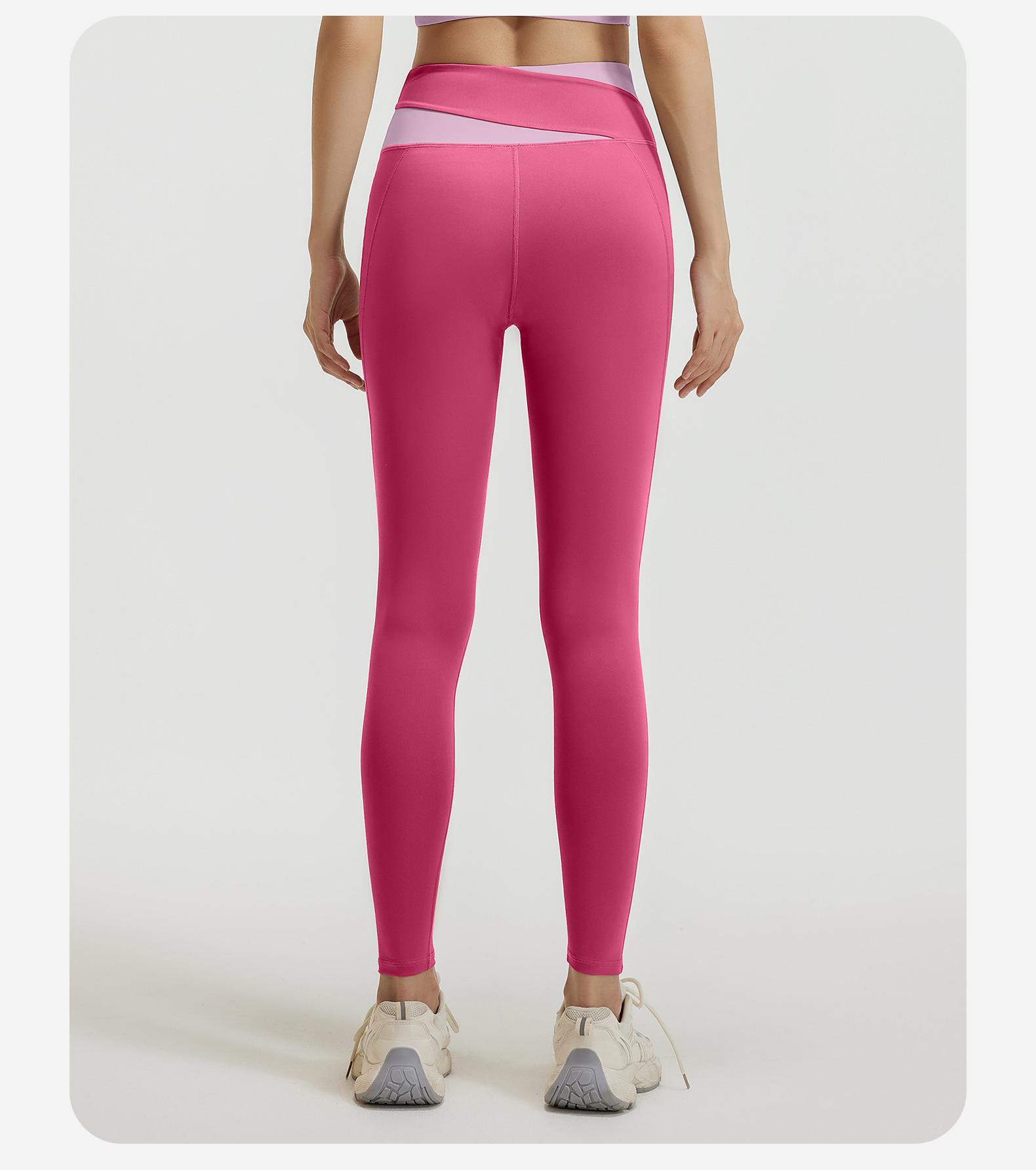 Pantalones de Yoga de Cintura Alta con Contraste de Color de Costura para Mujer Levantador de Cadera y Ajuste de Vientre Elásticos Cintura Cruzada Pantalones de Fitness para Correr Deportes Pantalones de Yoga