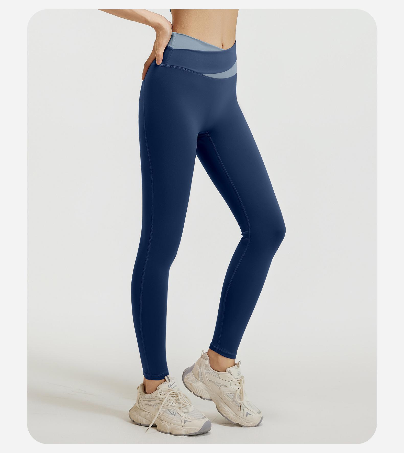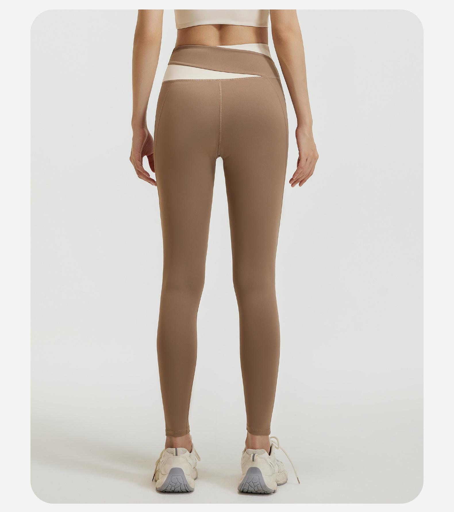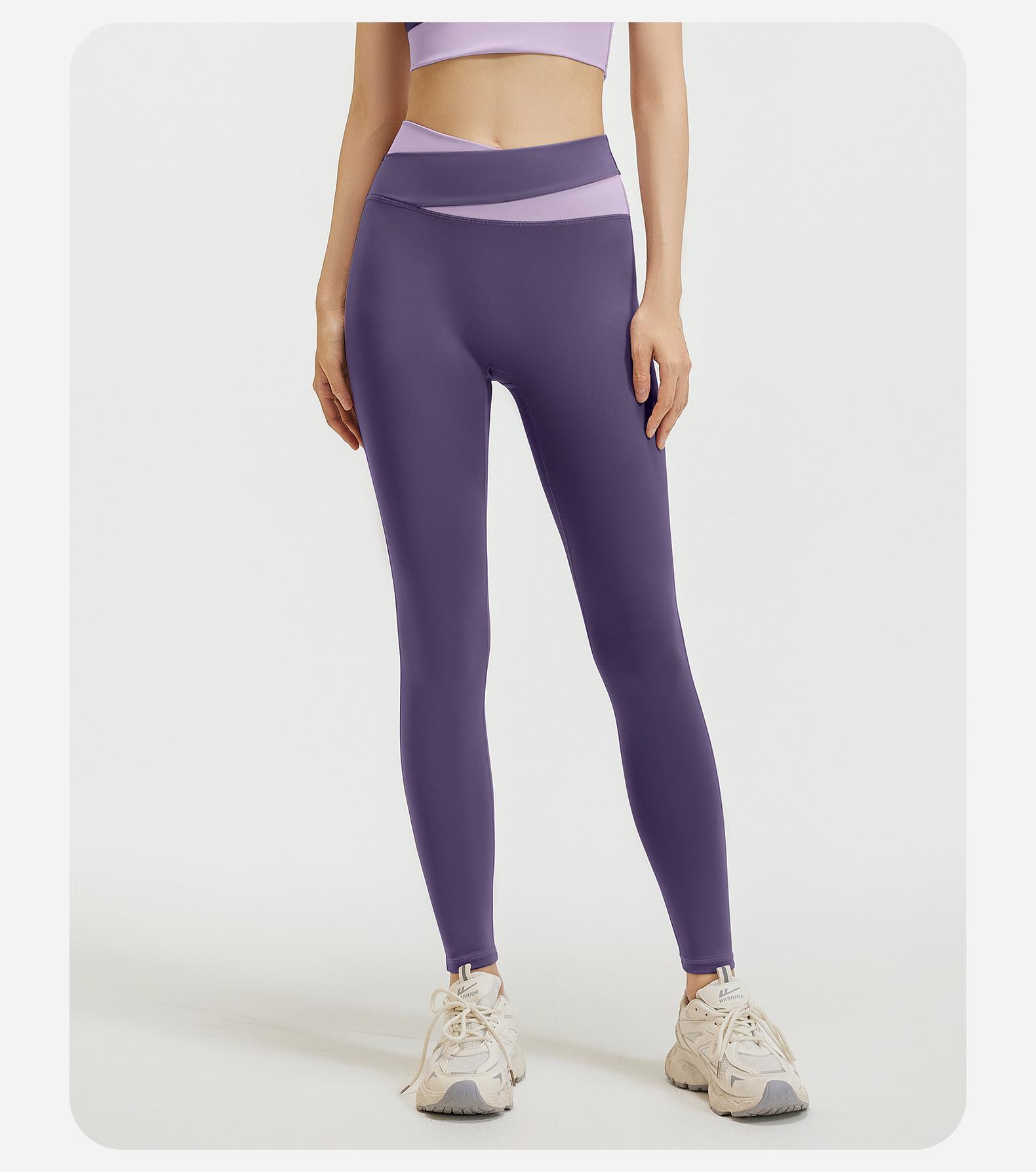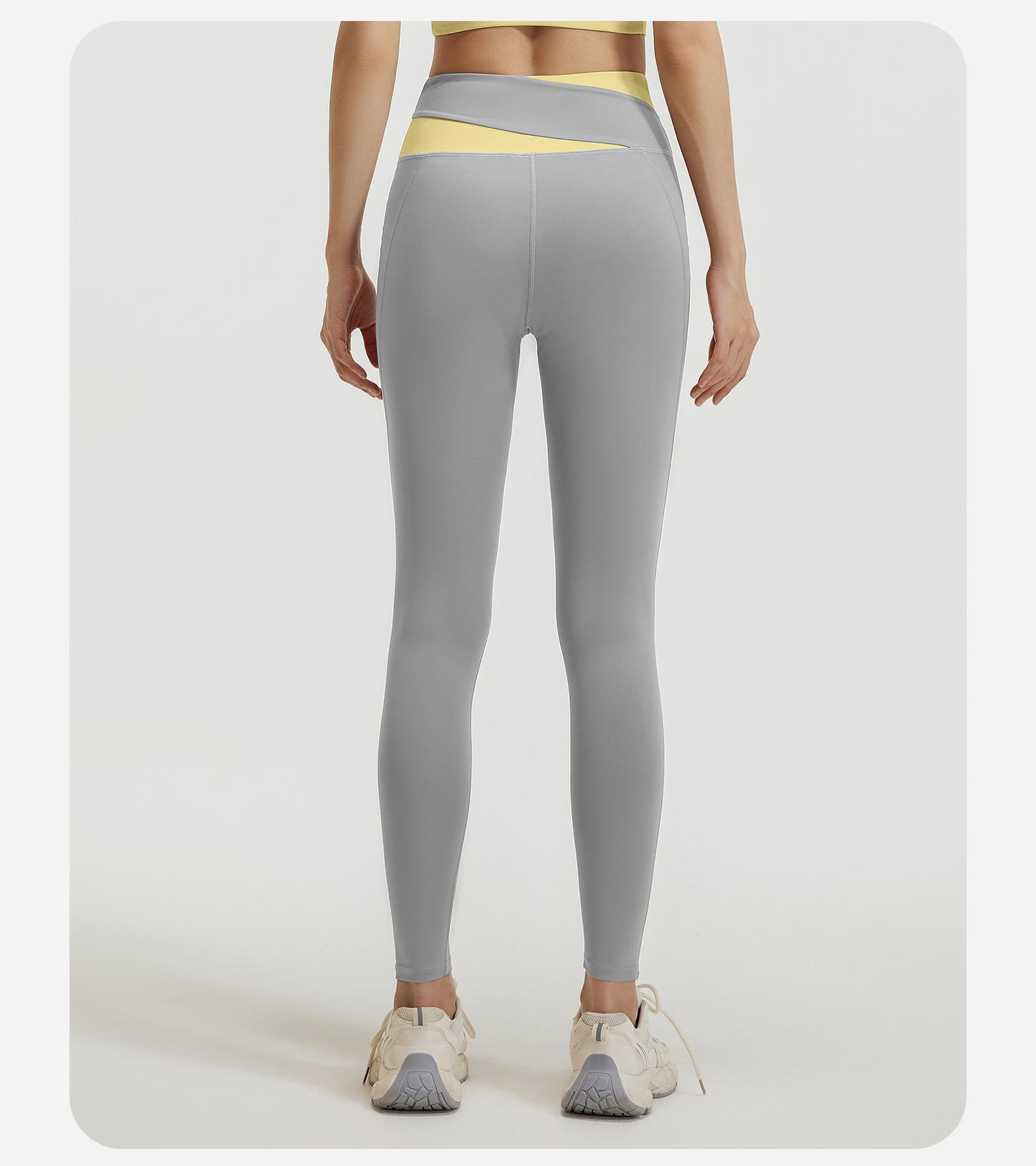 Pantalones de Yoga de Cintura Alta con Contraste de Color de Costura para Mujer Levantador de Cadera y Ajuste de Vientre Elásticos Cintura Cruzada Pantalones de Fitness para Correr Deportes Pantalones de Yoga
