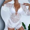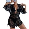Traje de baño tipo túnica de malla de manga larga Amazon 2023 para mujer, cintura alta, cordón ajustable, estilo europeo y americano, protector solar, bikini de tres piezas