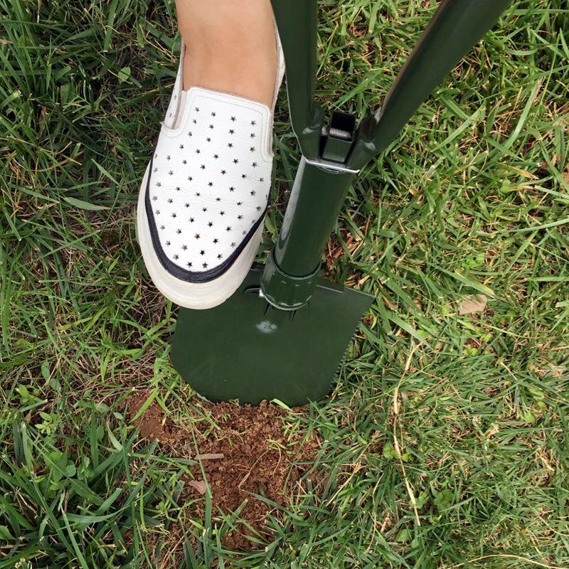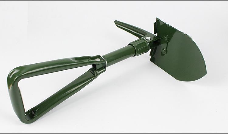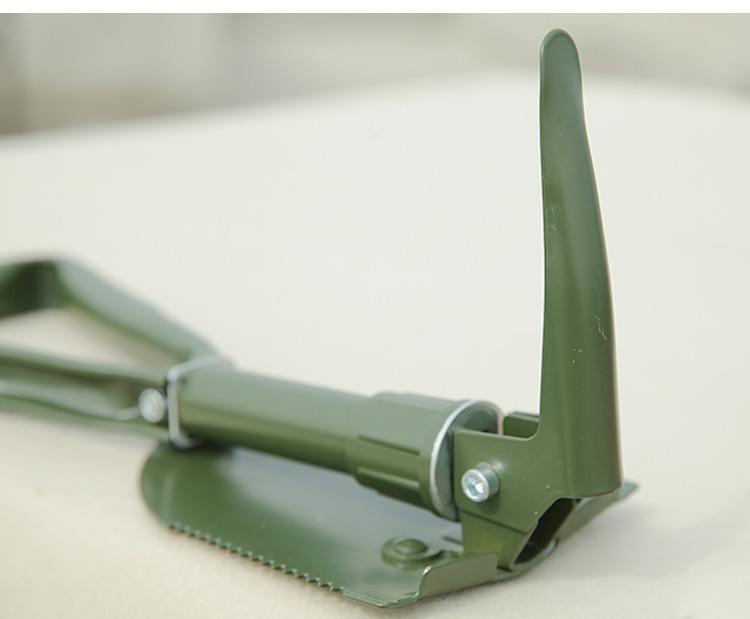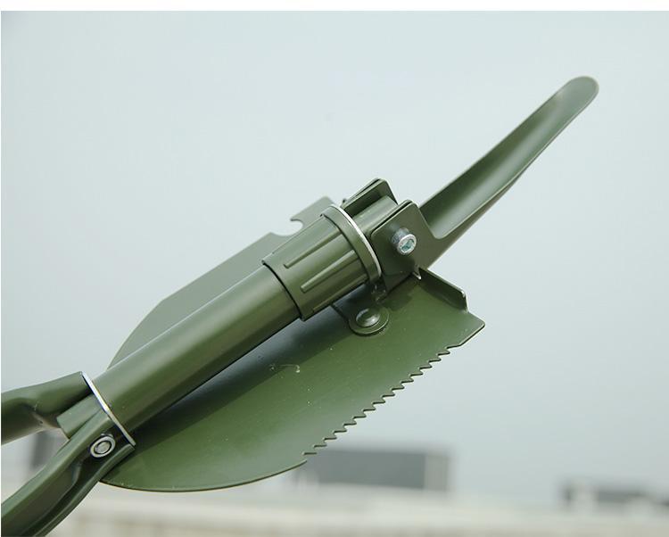 Función: Plegada hacia atrás, es una pala; plegada hacia atrás, es un pico. Ya sea que esté cavando un hoyo o removiendo la tierra, la pala también tiene dientes de sierra y un abridor de botellas.También es una buena idea guardarlo en tu coche.
