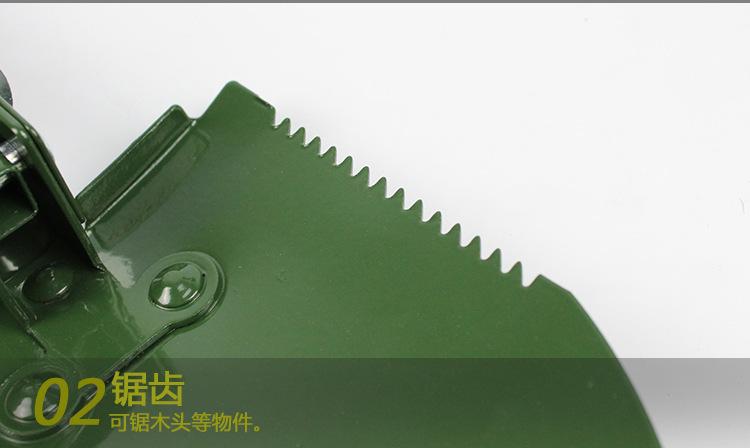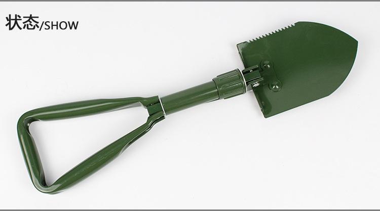 Embalaje: Bolsa de tela Oxford negra, se puede llevar o colgar en la cintura. Características: Múltiples usos, muy adecuado para acampar, acampar, montañismo, exploración, viajes, jardinería doméstica, investigación científica y otras actividades al aire libre. Tiene las funciones de pala, pico, sierra, ranura para extraer clavos, etc.