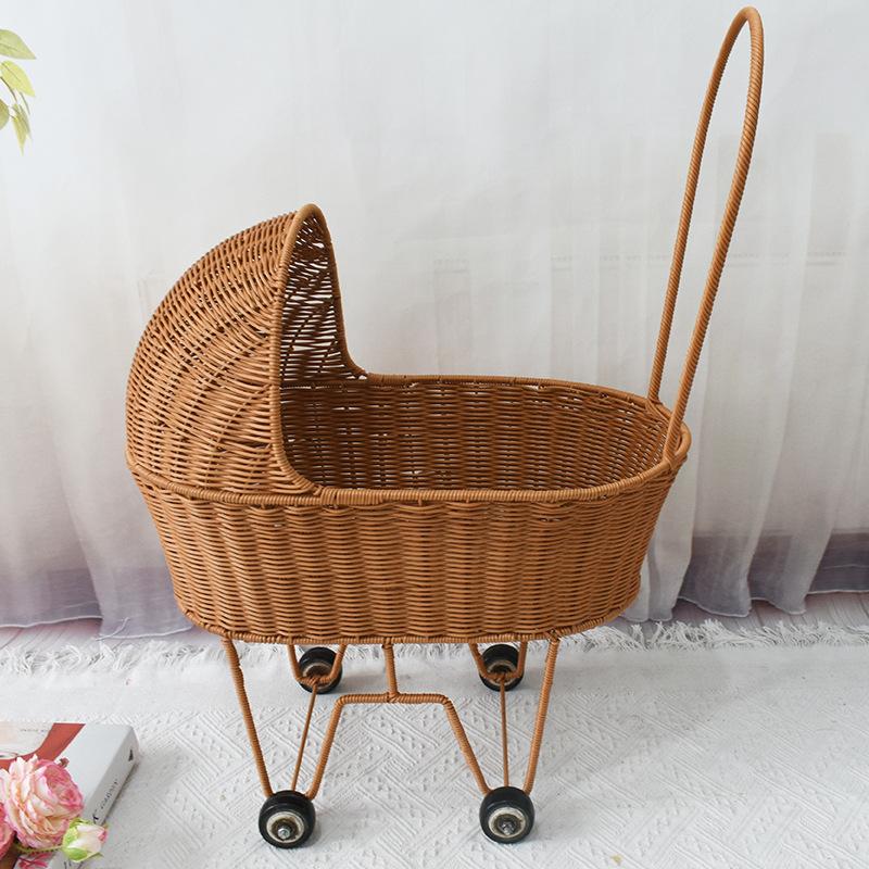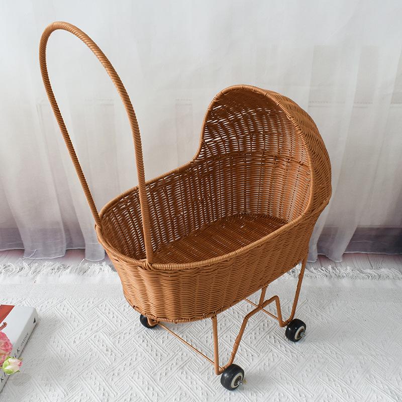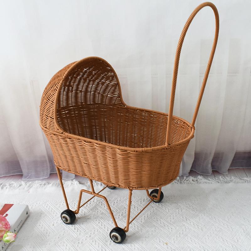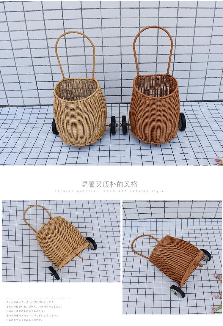 Carro Infantil Tejido de Ratán Cesta de Almacenamiento para Sala de Juegos Juguete Utilería de Exhibición para Fotografía Cesta de Frutas de Ratán Imitación