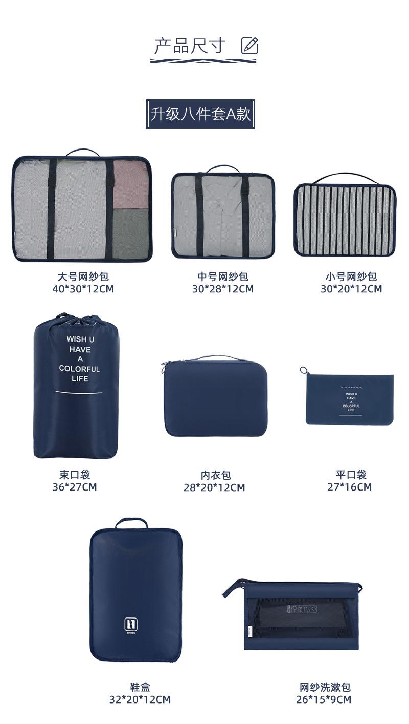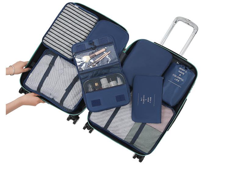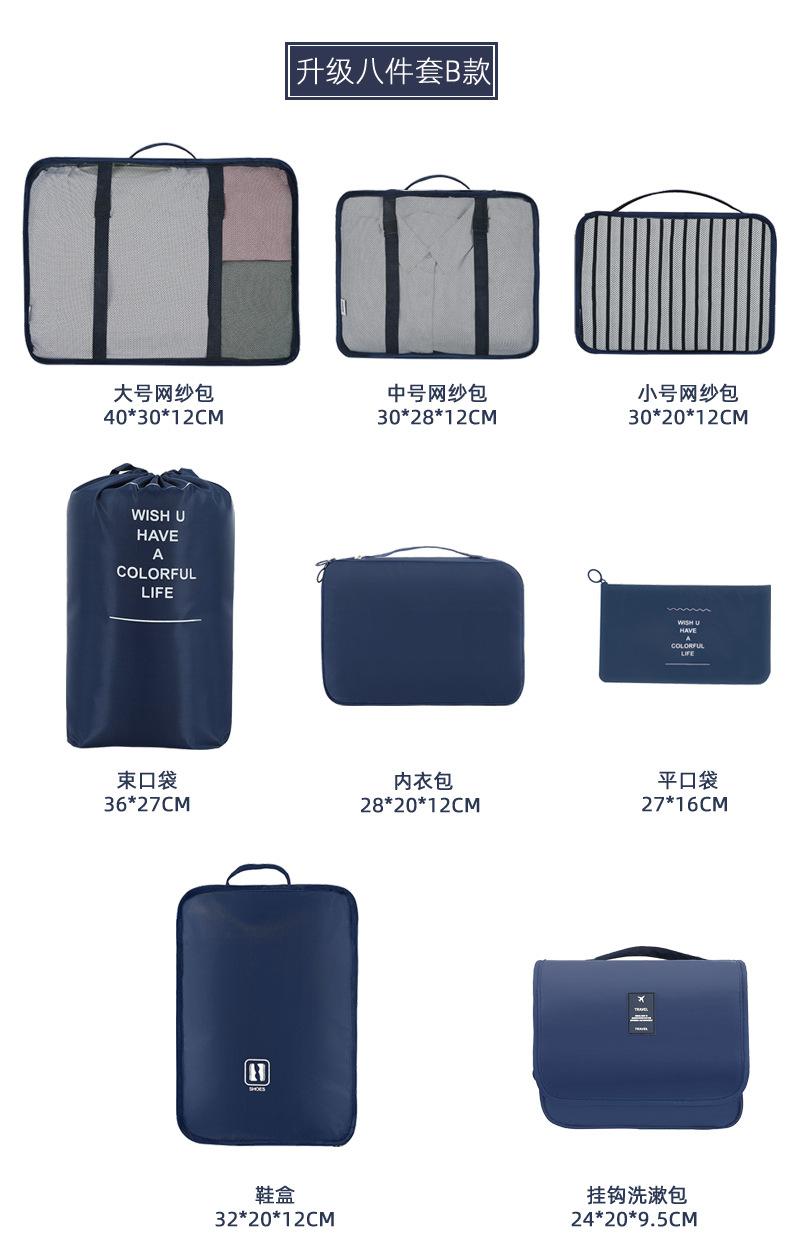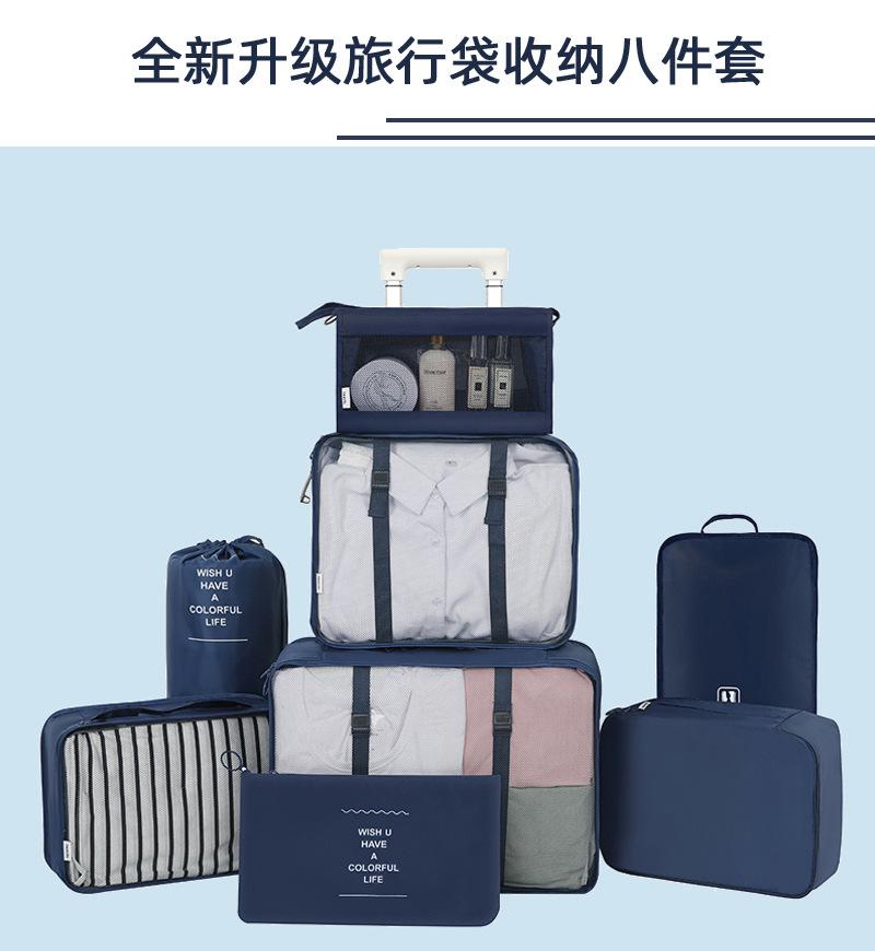 Bolsa de almacenamiento de viaje, conjunto de ocho piezas, maleta, ropa, zapatos de viaje, ropa interior, bolsa de cosméticos, organizador, conjunto de ocho piezas.