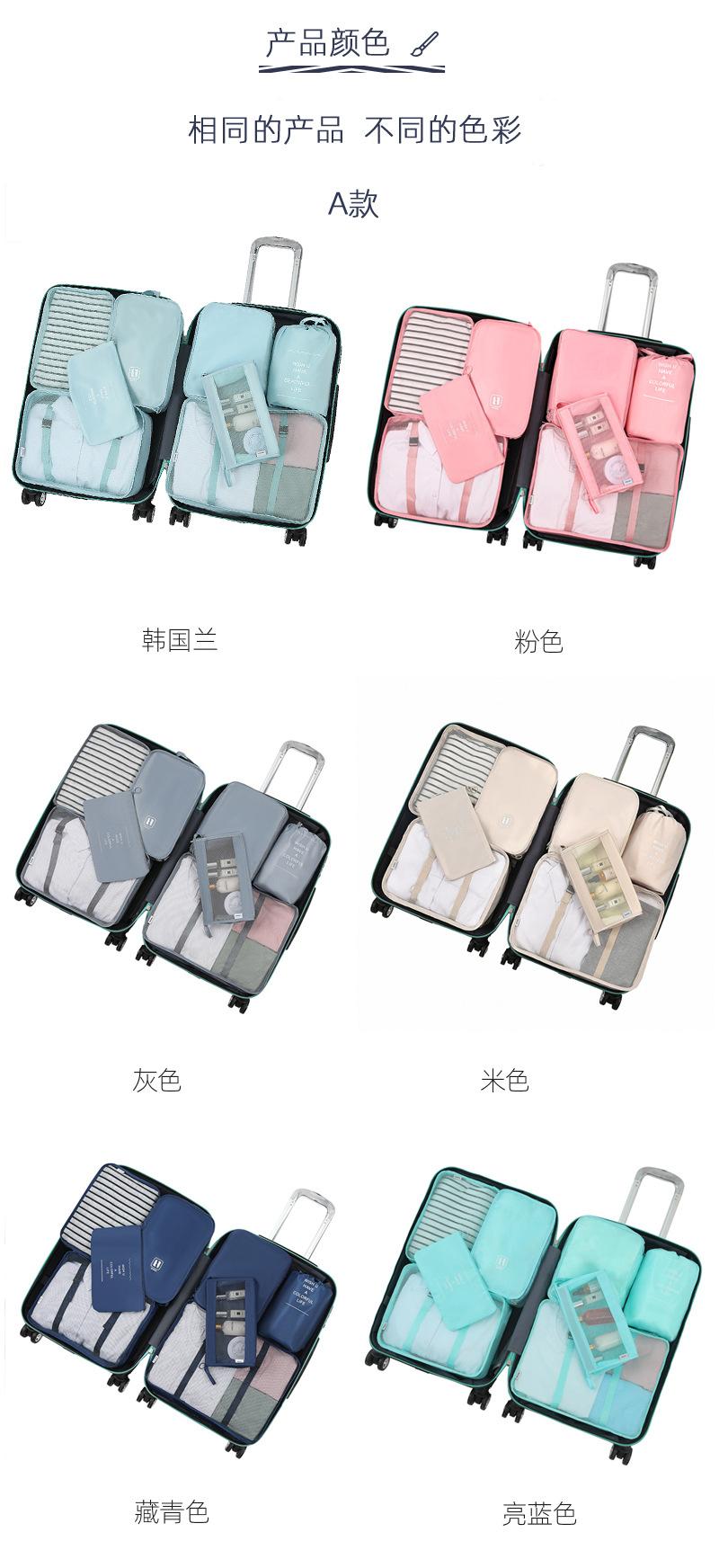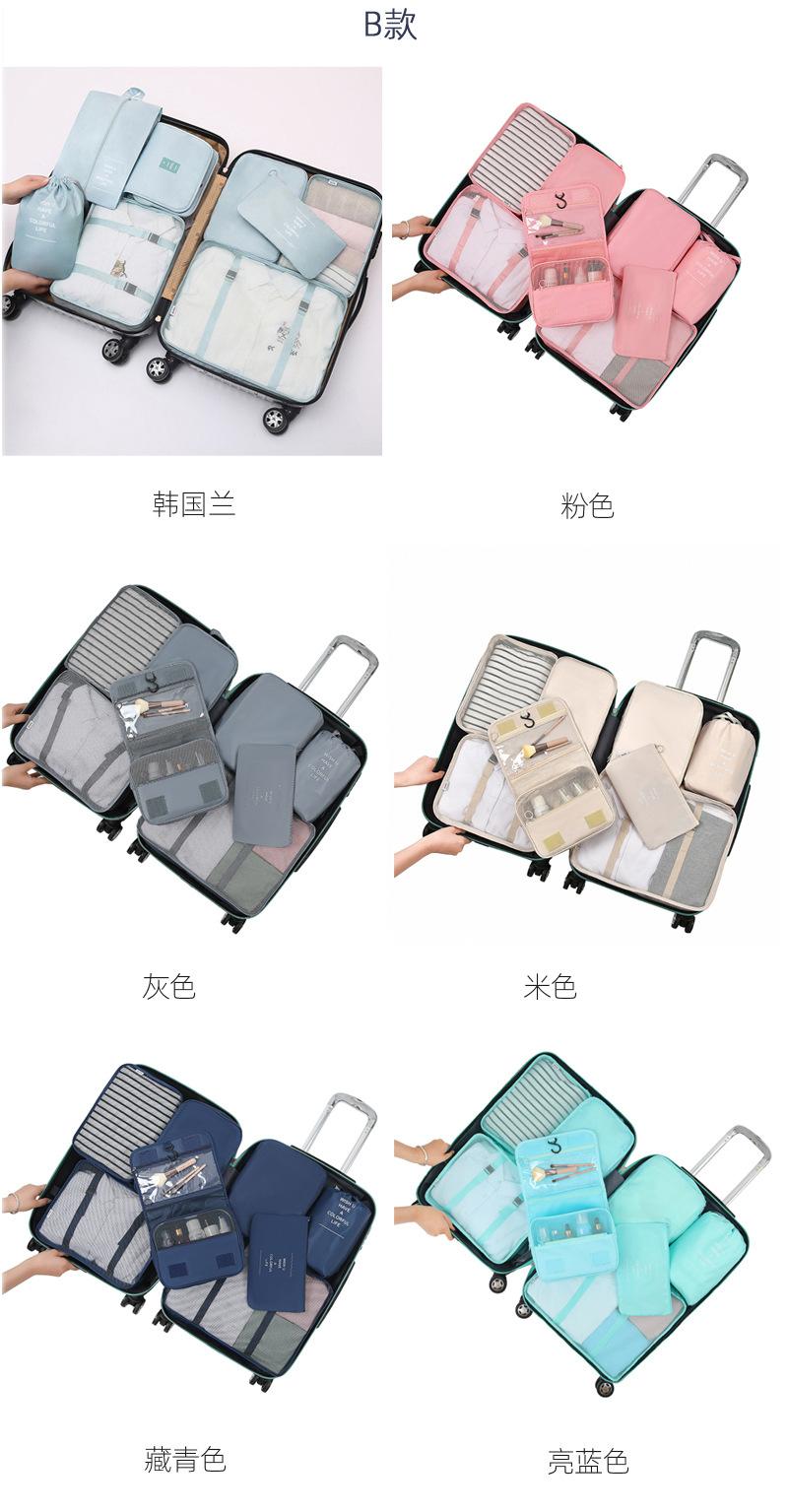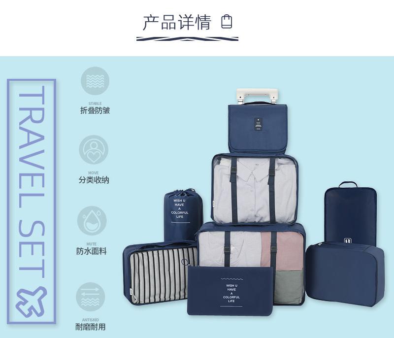 Bolsa de almacenamiento de viaje, conjunto de ocho piezas, maleta, ropa, zapatos de viaje, ropa interior, bolsa de cosméticos, organizador, conjunto de ocho piezas.