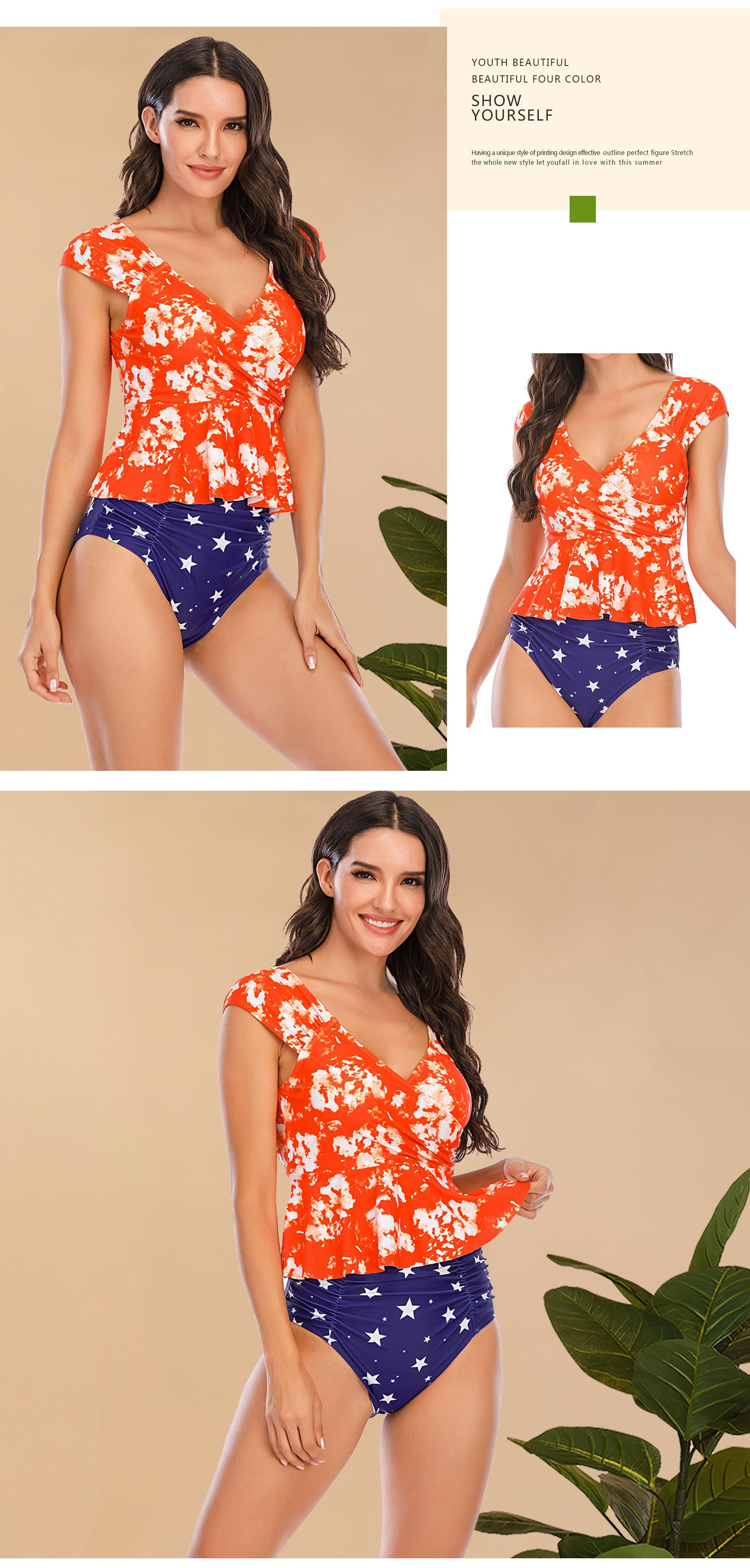2025 Nuevo Traje de Baño Europeo y Americano Bikini Dividido para Mujer Traje de Baño Degradado Estampado Multicolor Dropshipping