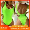 Bikini de una pieza, nuevo modelo 2024, color liso, para mujer europea y americana.