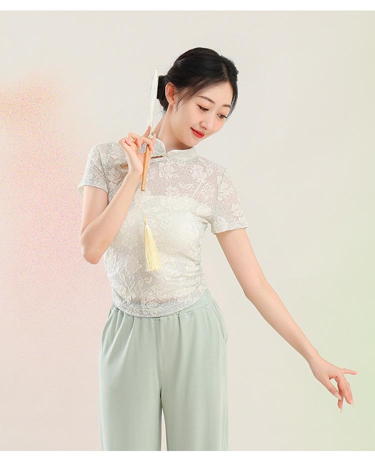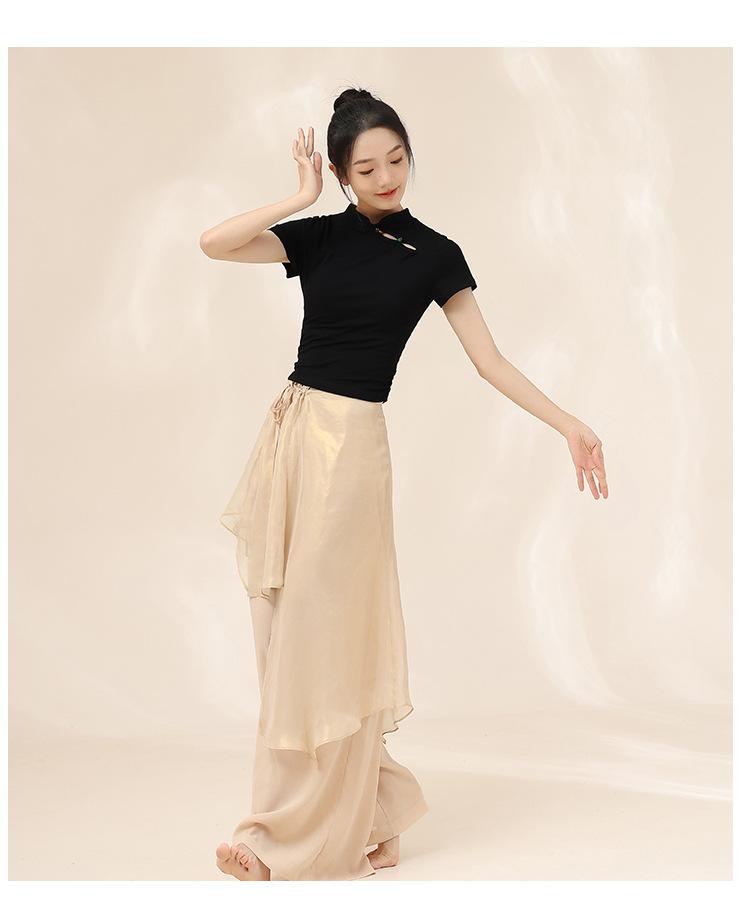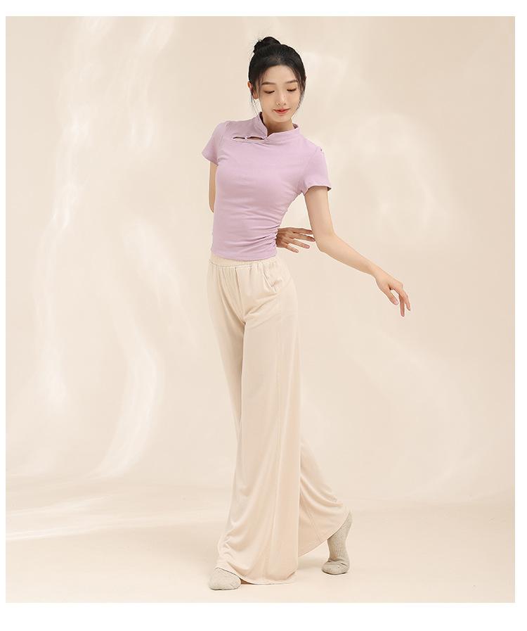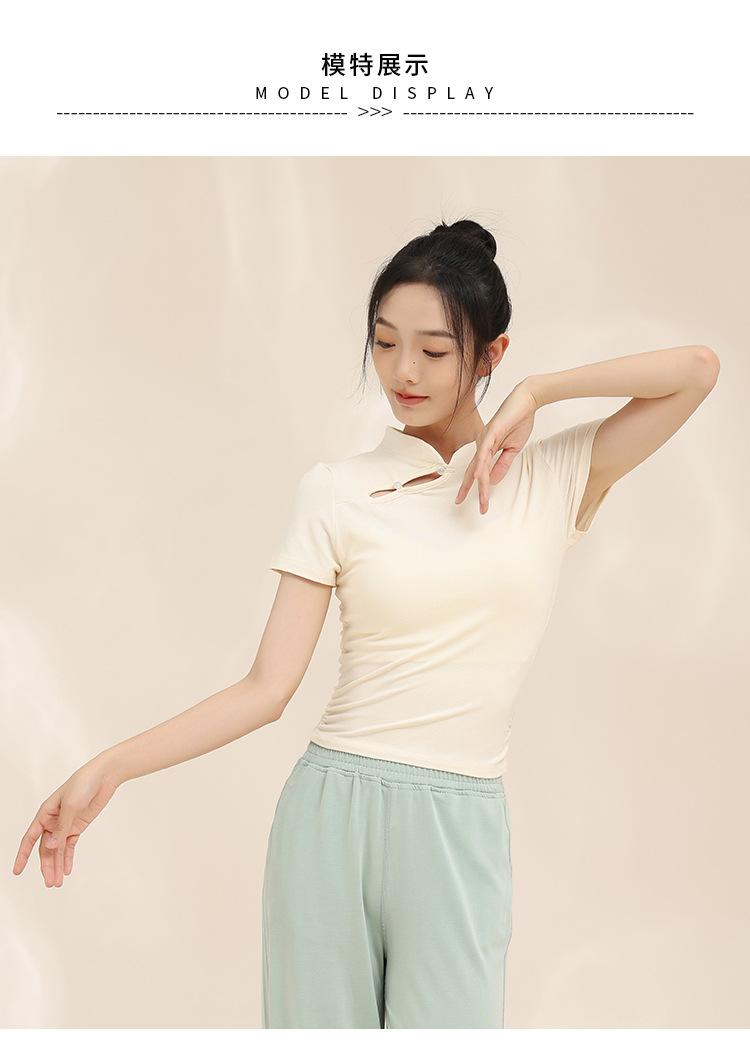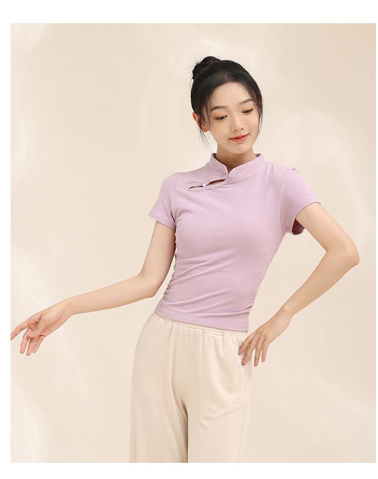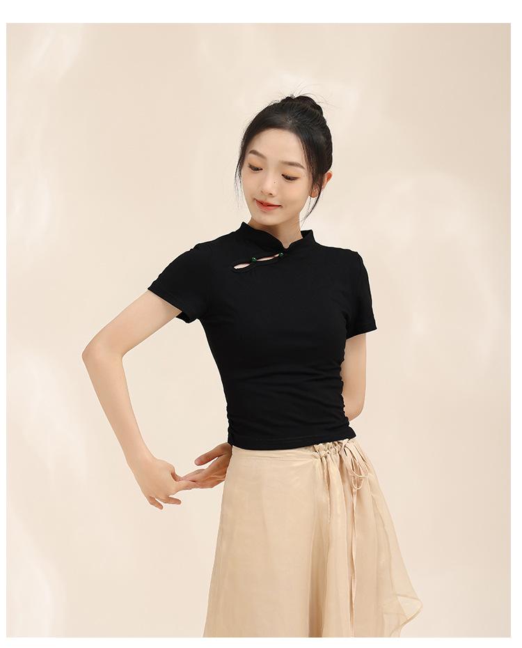 Ropa de Danza Clásica Temperamento Ajustado Top de Manga Corta Estilo Chino Danza Moderna Ropa de Danza Étnica Ropa de Práctica Top de Danza