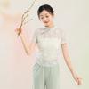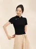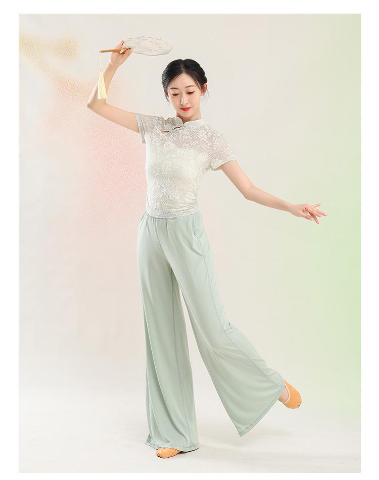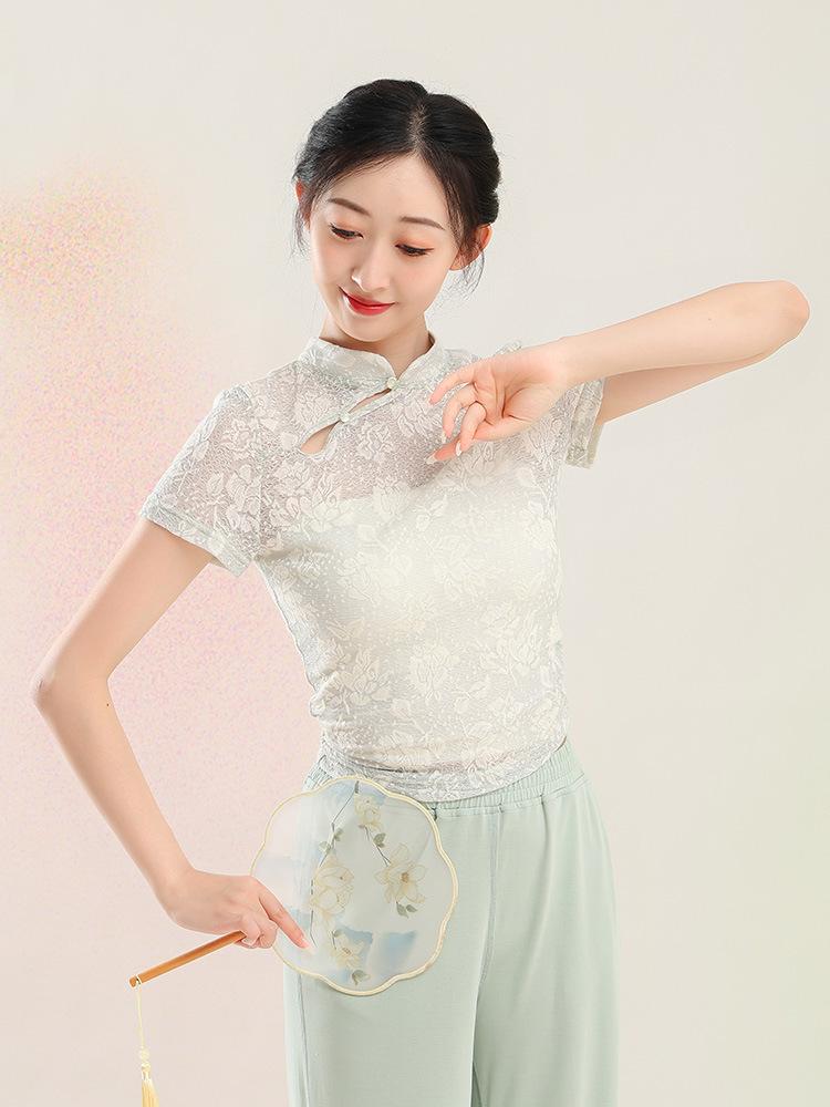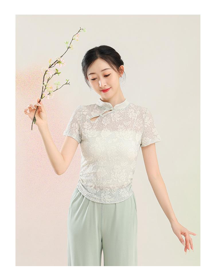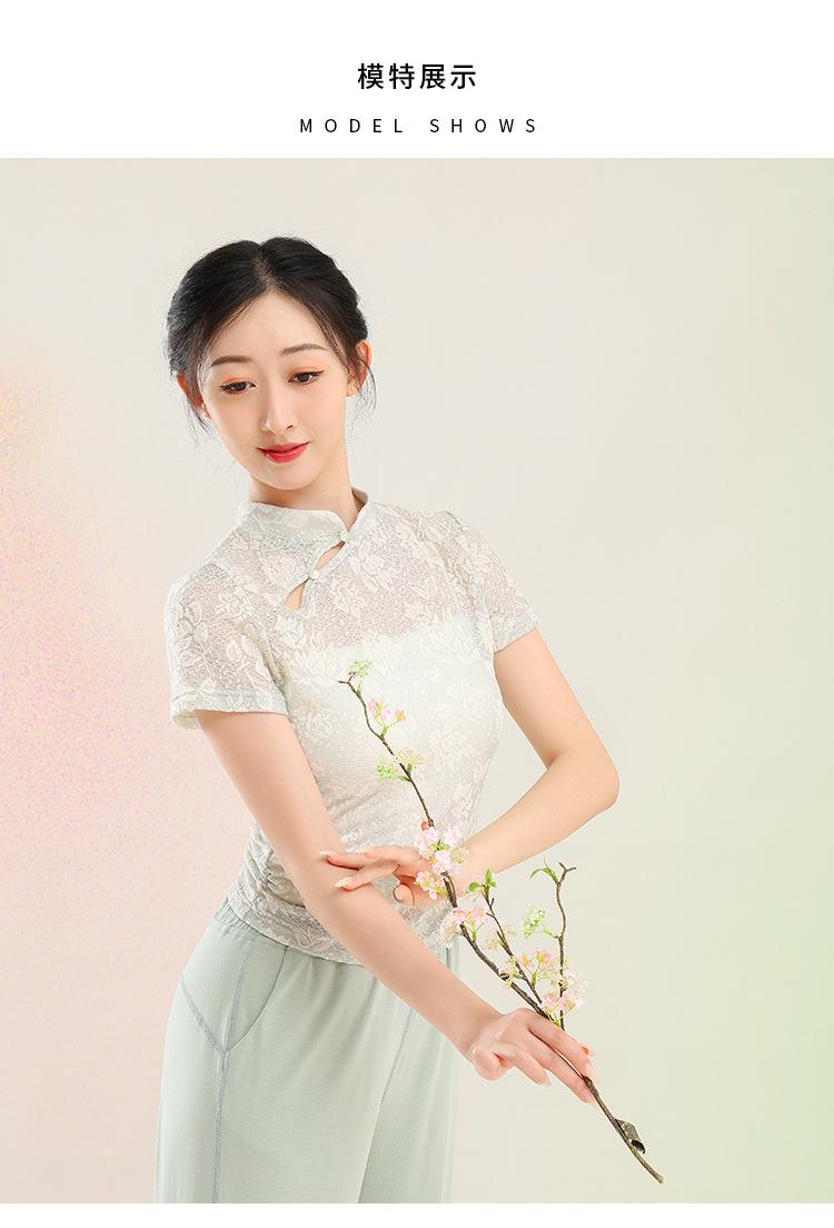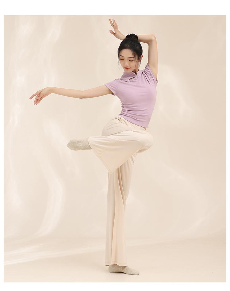 Ropa de Danza Clásica Temperamento Ajustado Top de Manga Corta Estilo Chino Danza Moderna Ropa de Danza Étnica Ropa de Práctica Top de Danza