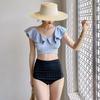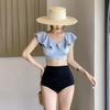 FUENTE Fábrica Estilo coreano nuevo con volantes conservador adelgazante espalda descubierta abertura cintura alta traje de baño vacaciones aguas termales traje de baño