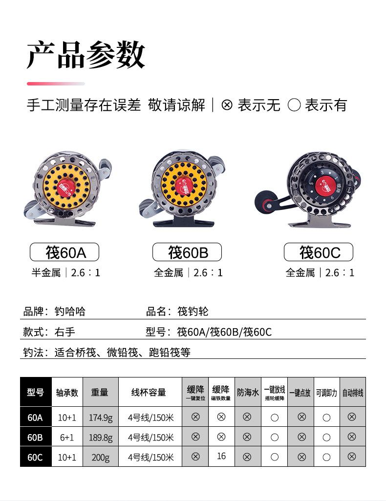 Semi-metal raft fishing wheel 60A (right hand), Full metal raft fishing wheel 60B (right hand), Full metal raf...