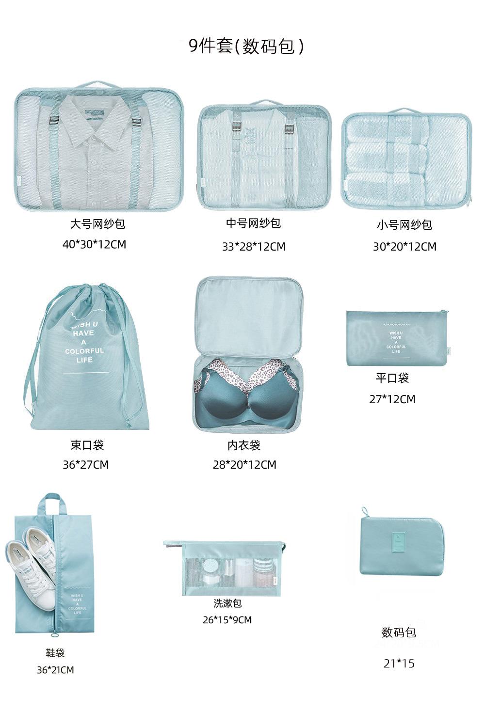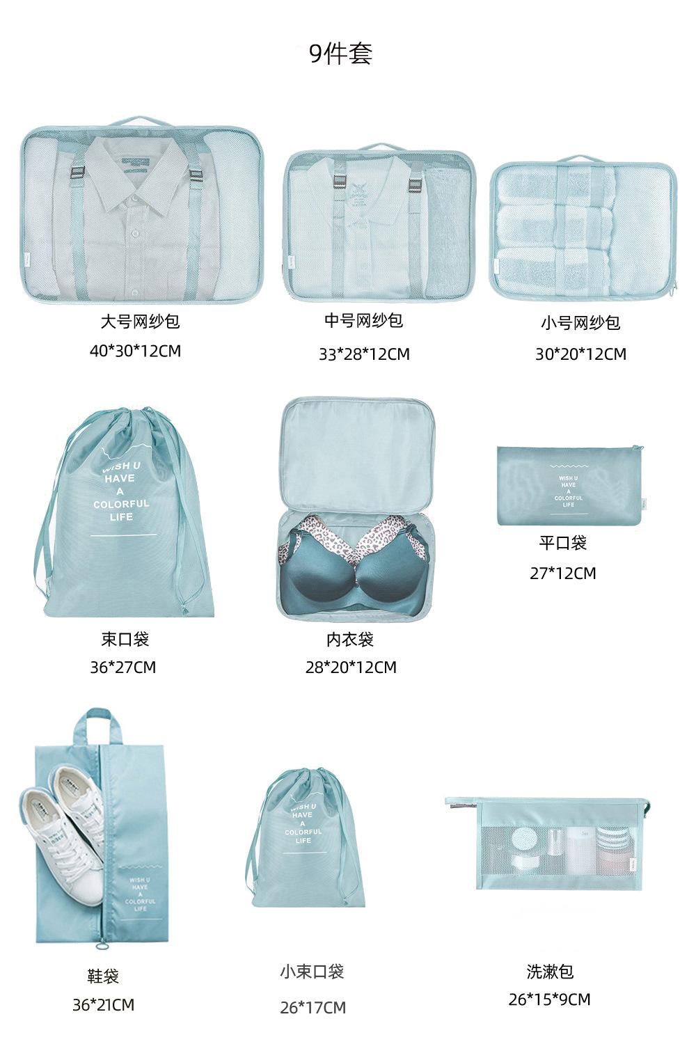 Bolsa de almacenamiento de viaje de sarga, conjunto de nueve piezas, bolsa de viaje para ropa, bolsa de almacenamiento de equipaje, conjunto de almacenamiento de suministros de viaje