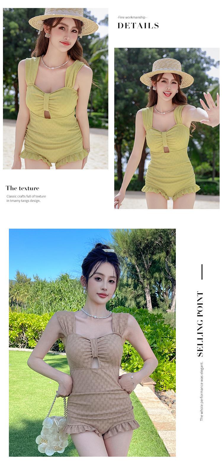 Traje de baño femenino de una pieza 2025, sexy, con tirantes para cubrir el vientre, puro, delgado, suave, pequeño, fresco, de aguas termales, al por mayor