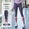 Traje de yoga desnudo color melocotón con cintura plisada y costuras en los pies, traje deportivo de fitness para mujer