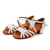 Nuevos zapatos de baile latino tejidos para niños, zapatos de práctica de baile con nudo chino de satén de tacón alto para niñas, una generación de comercio exterior