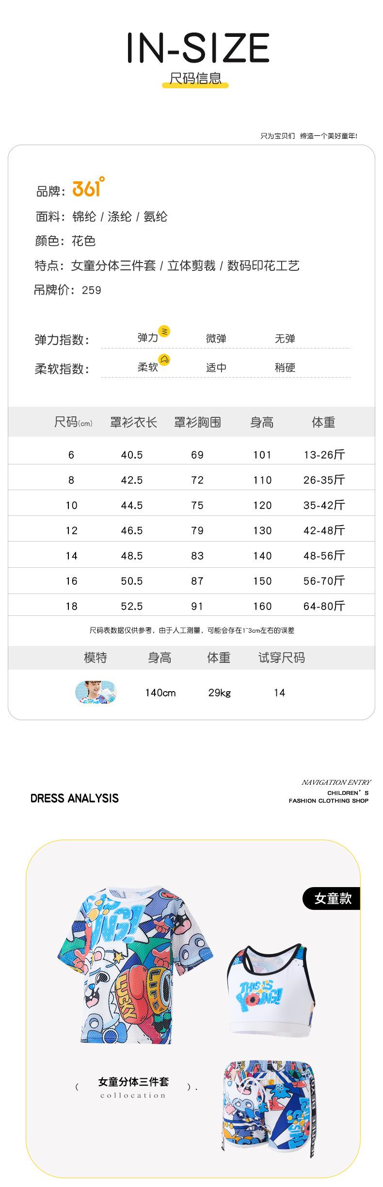 Traje de baño para niños 361 Traje de baño para bebés y niñas grandes Traje de baño para estudiantes Traje de baño transpirable de tres piezas lindo