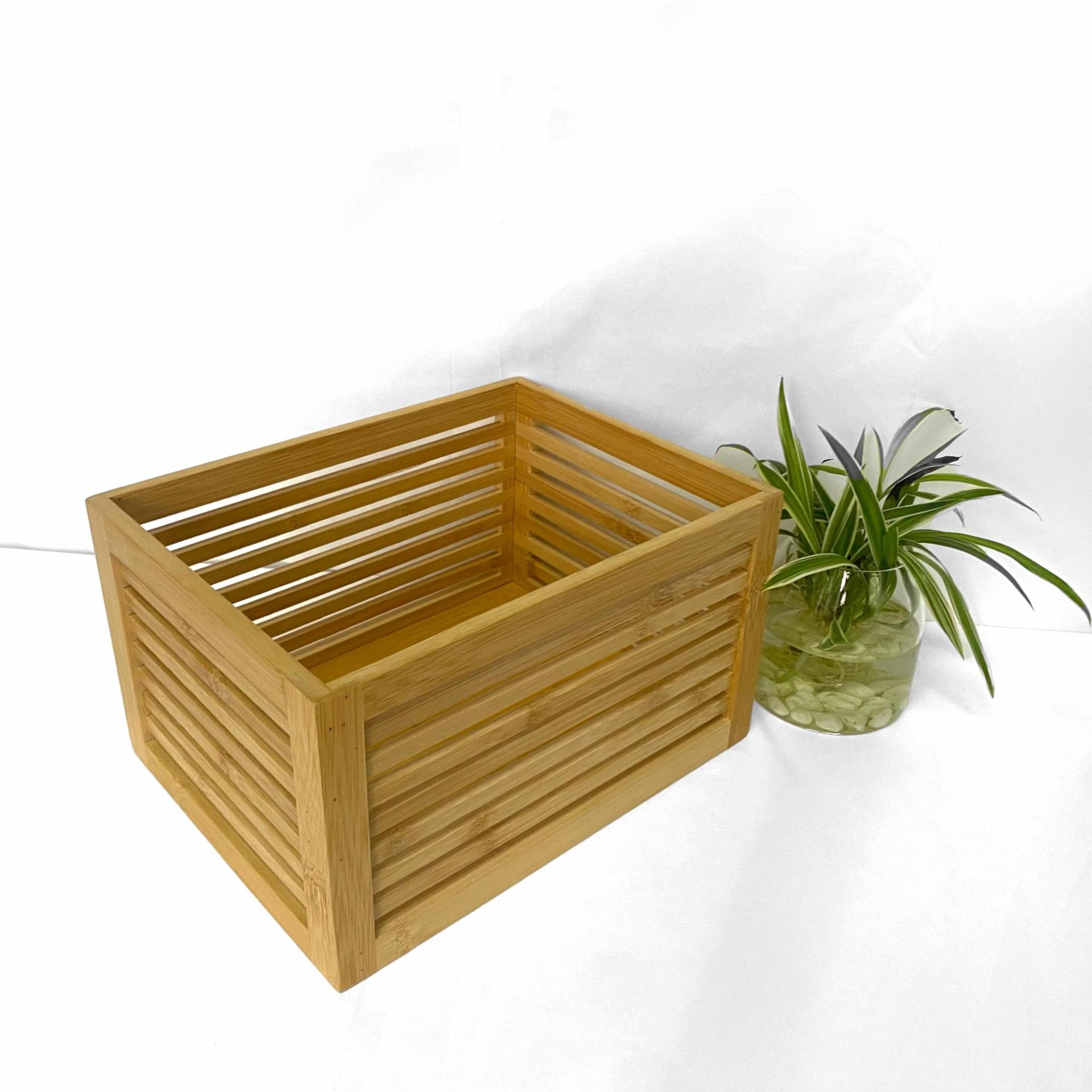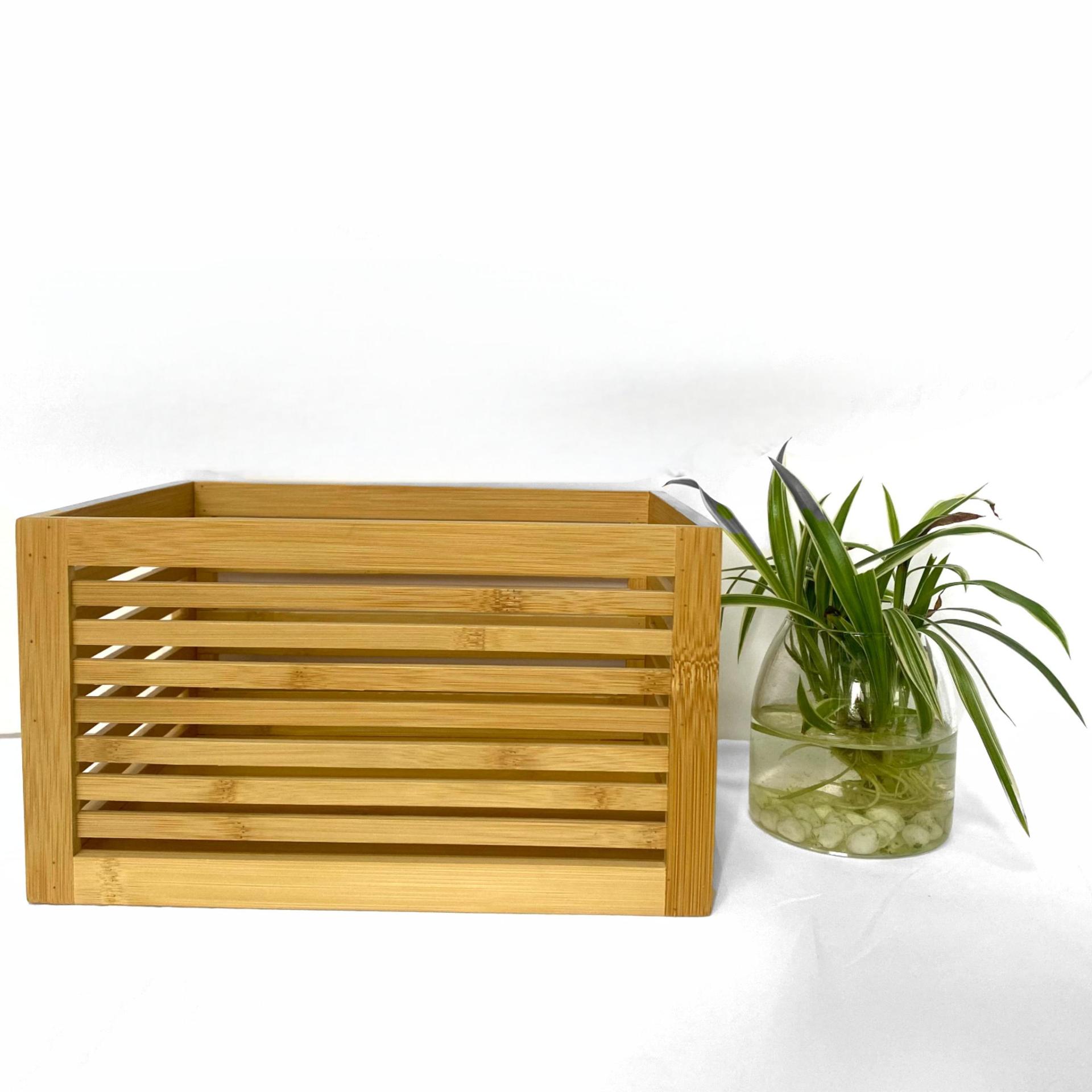 Cesta de almacenamiento de bambú Cesta de madera hueca para frutas y verduras Marco de almacenamiento de artículos diversos de madera simple Cesta de almacenamiento de escritorio