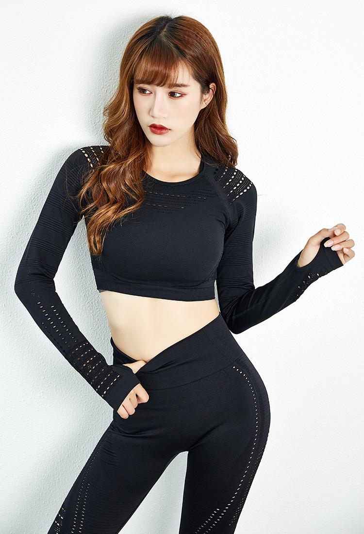 Celebridad de Internet Hueco Transpirable Fitness Manga Larga Gimnasio Secado Rápido Ombligo Expuesto Ropa Deportiva Ajustada Agujero para el Pulgar Yoga Manga Larga