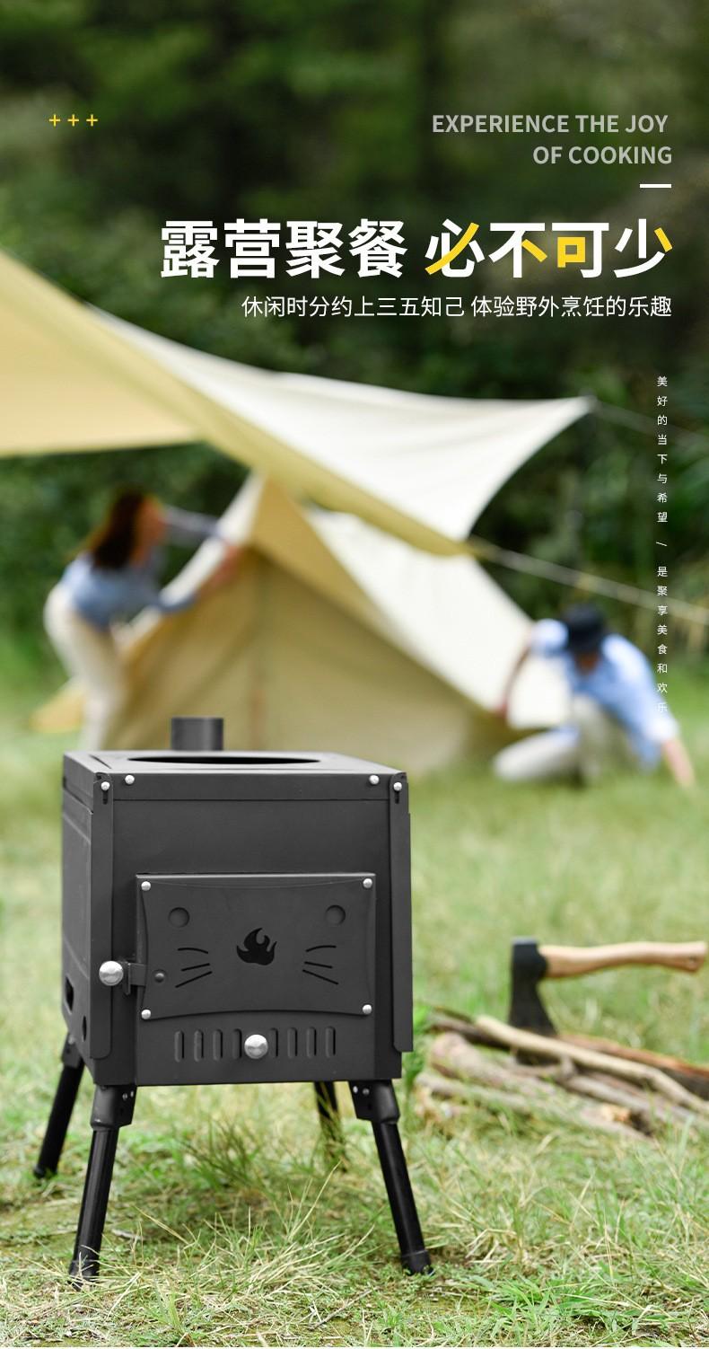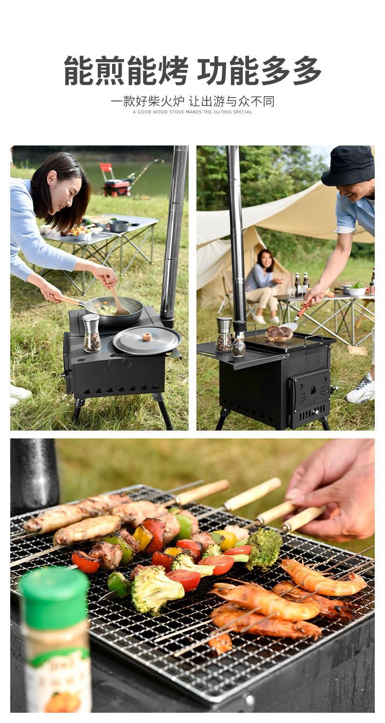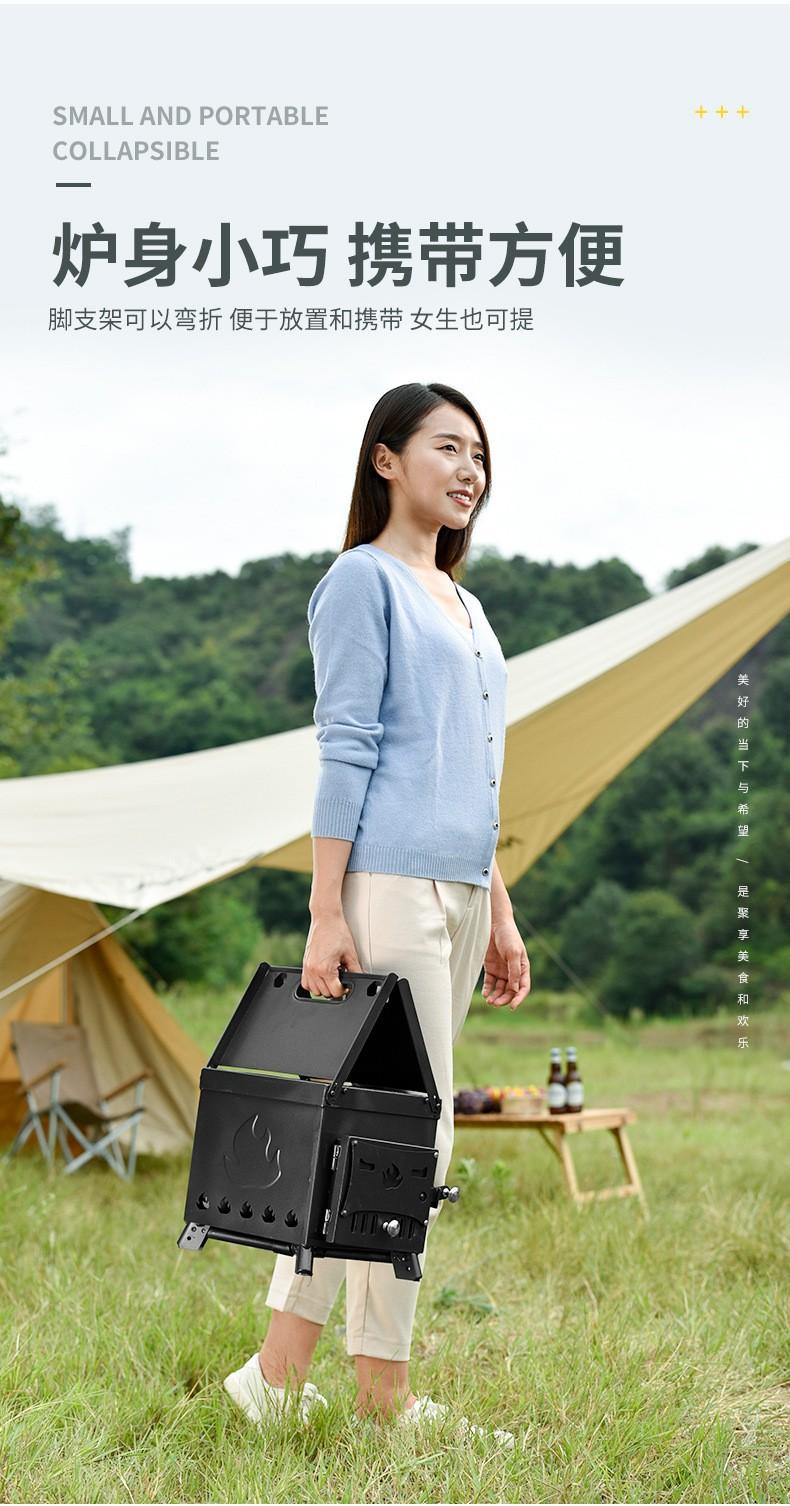 Estufa de leña para acampar al aire libre, calefacción, estufa de leña, iluminación para picnic, carpa, ventana de fuego, estufa de acero inoxidable, estufa de tarjeta plegable
