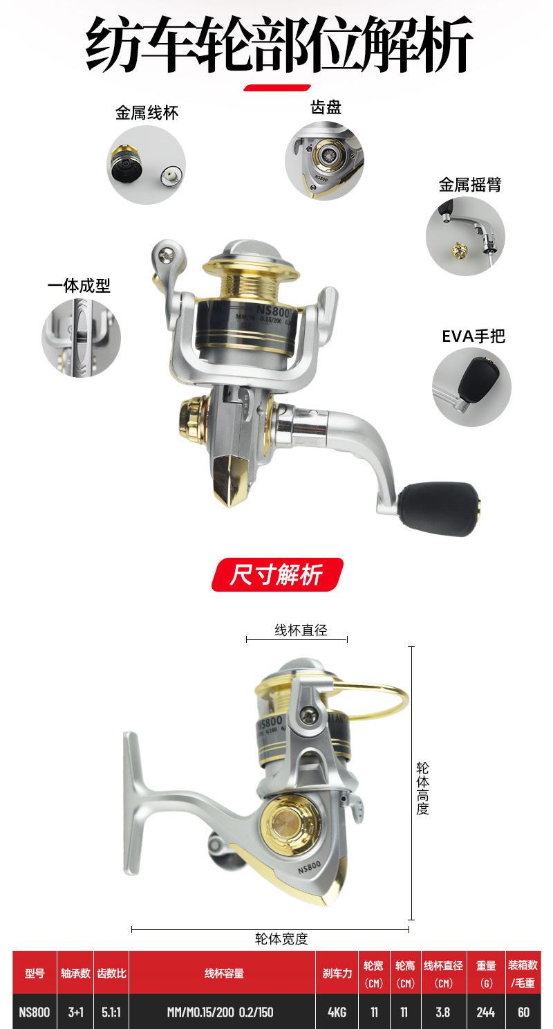 Mini rueda giratoria de metal NS800, rueda de pesca de roca pequeña sin huecos, rueda de sedal, rueda de caña de pescar, rueda de pesca, rueda de pesca