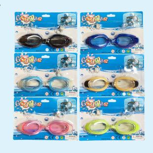 Gafas de natación de cartón económicas para niños, gafas de natación universales con tapones para los oídos, gafas de natación planas transparentes de alta definición ajustables, venta al por mayor |