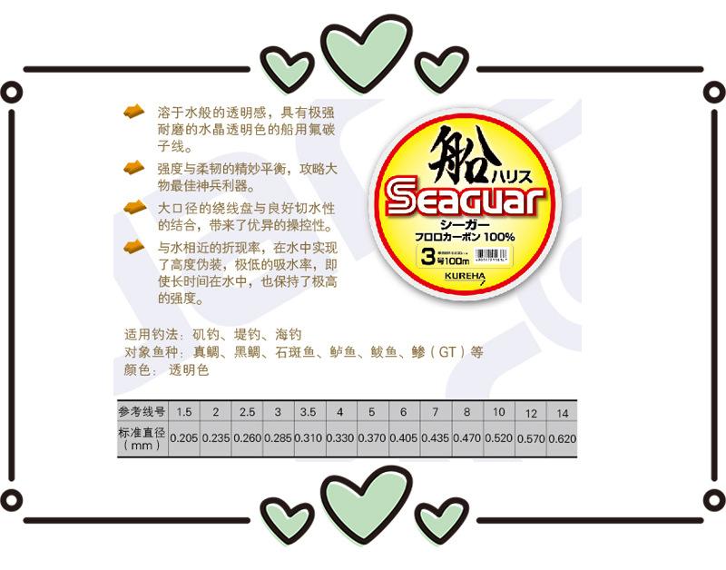 Línea de pesca de fluorocarbono con sublínea de carbono Seaguar Sig de Japón, para pesca en alta mar, pesca en roca, alambre frontal transparente, 100 metros