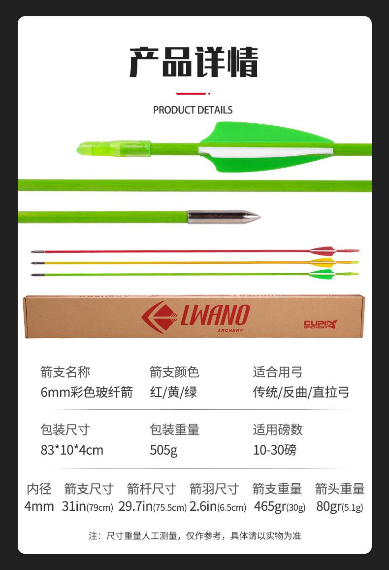 Flecha de fibra de vidrio de color de 6 mm roja lugar escénico flecha de entrenamiento de tiro con arco flecha de fibra de vidrio de 6 mm flecha de práctica arco recurvo arco tradicional