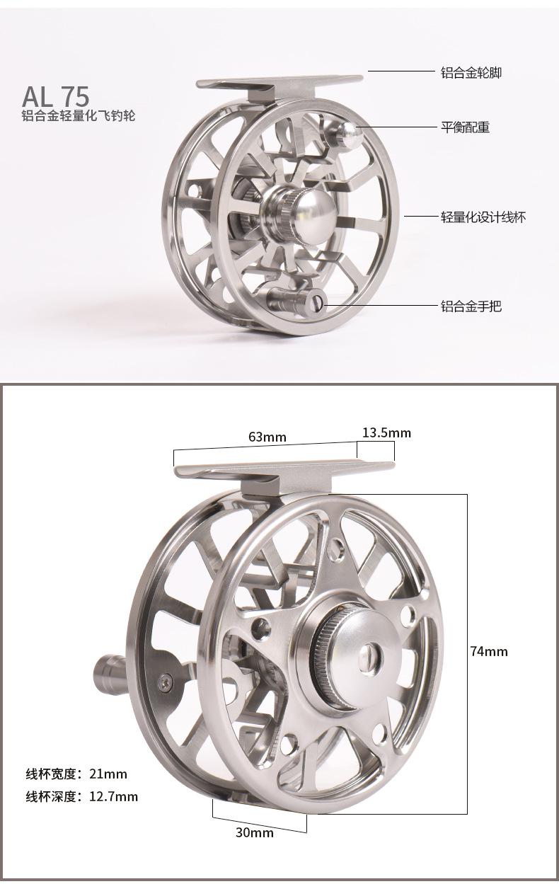 Nombre del producto: Carrete de pesca con mosca de aleación de aluminio AL75